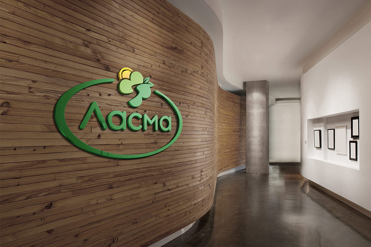 Шрифтове написання назви “ЛАСМА” розроблено дизайнерами нашої студії та виконане у строгому стилі.