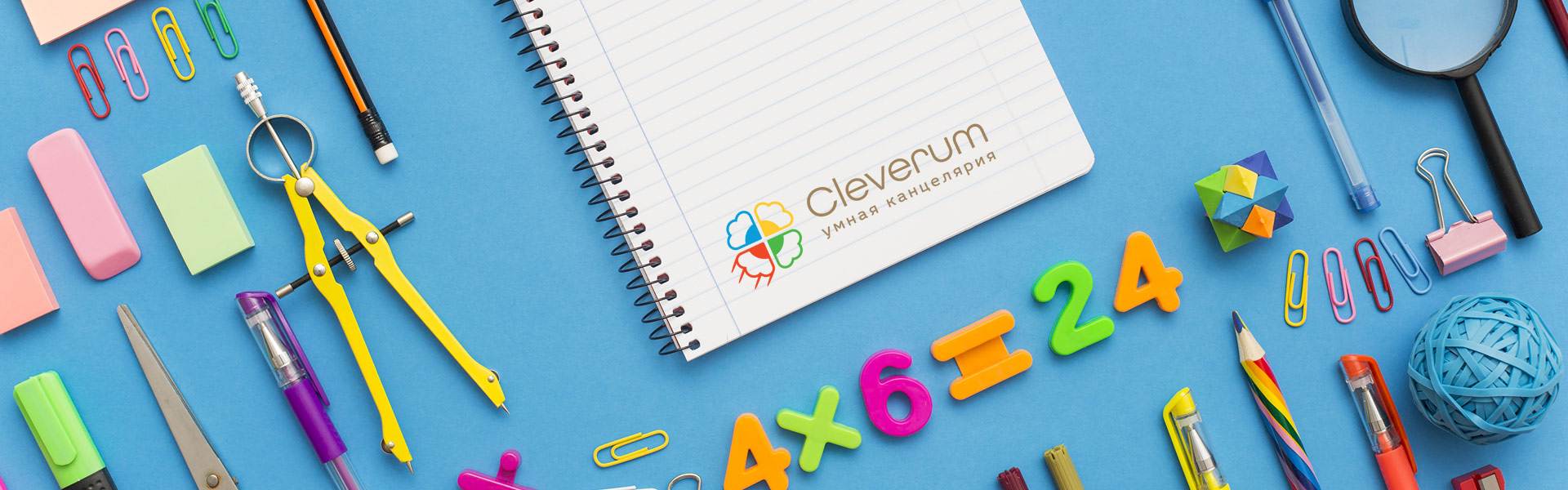 Шрифтове написання назви “Cleverum” розроблено дизайнерами нашої студії та виконане у строгому стилі. Для розшифровки діяльності магазину було використано в логотипі дескриптор "розумна канцелярія".