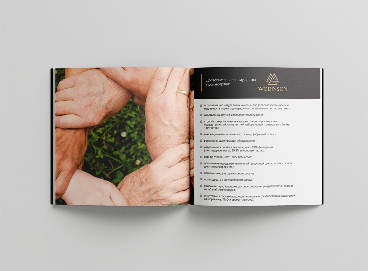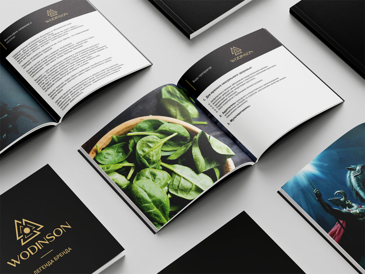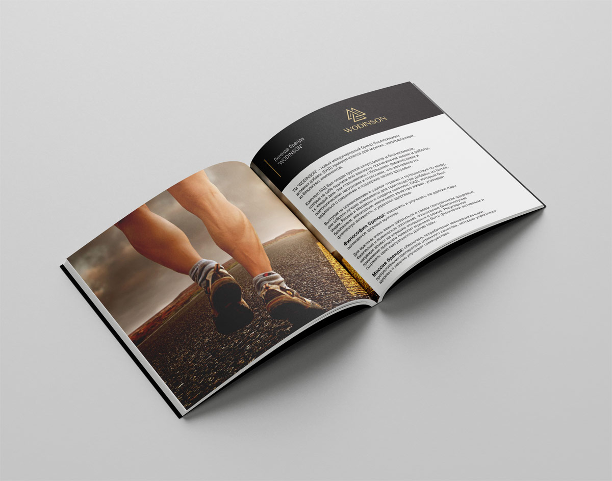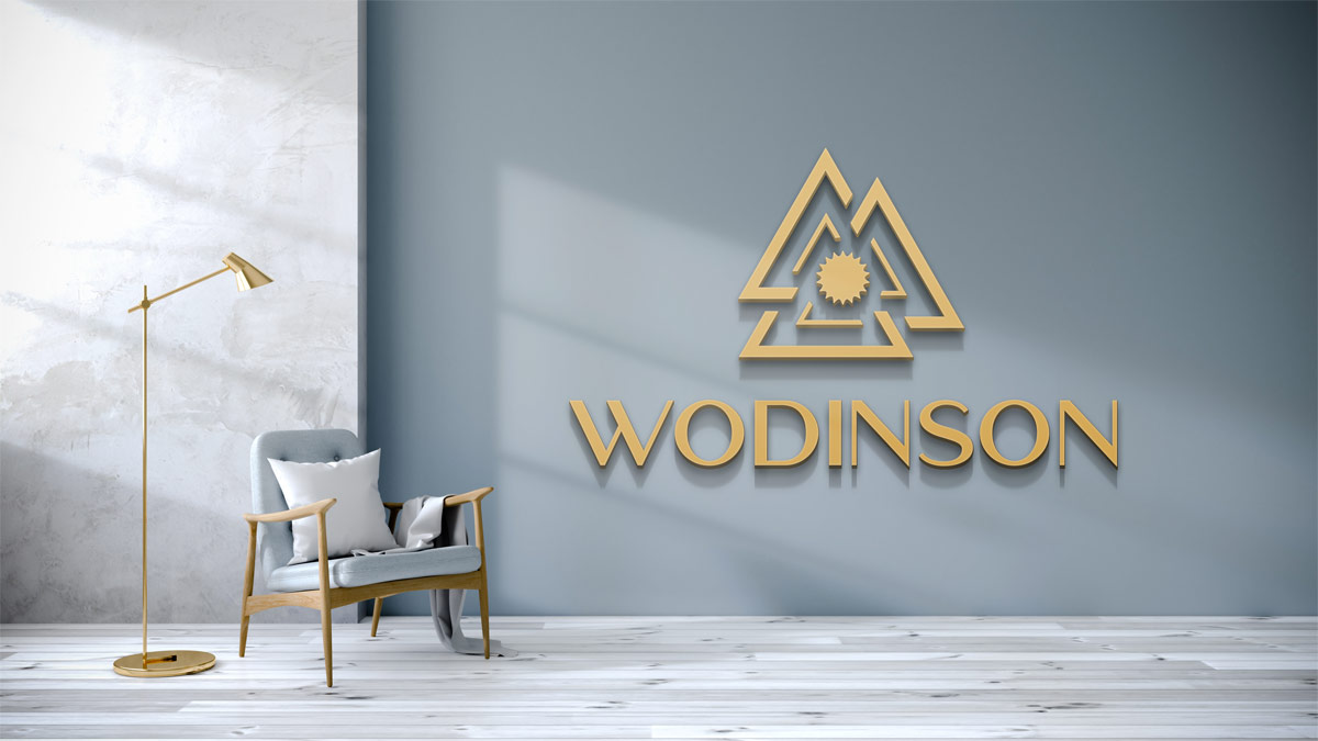 Жовтий колір асоціюється з гарним настроєм, сонцем, відкритістю, сучасним мисленням та відображає ефективність.Шрифтове написання назви “WODINSON” розроблено дизайнерами нашої студії та виконане у строгому стилі.