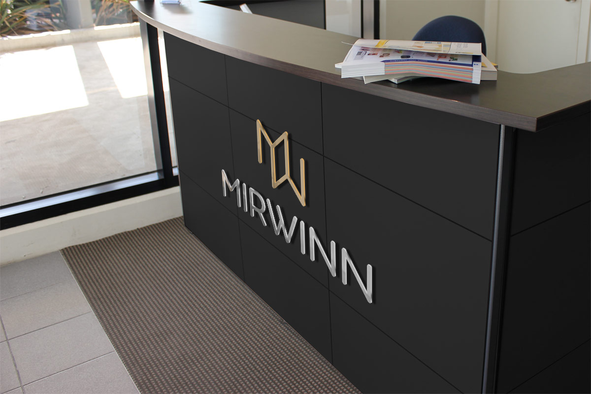 Шрифтове написання назви “MIRWINN” розроблено дизайнерами нашої студії.