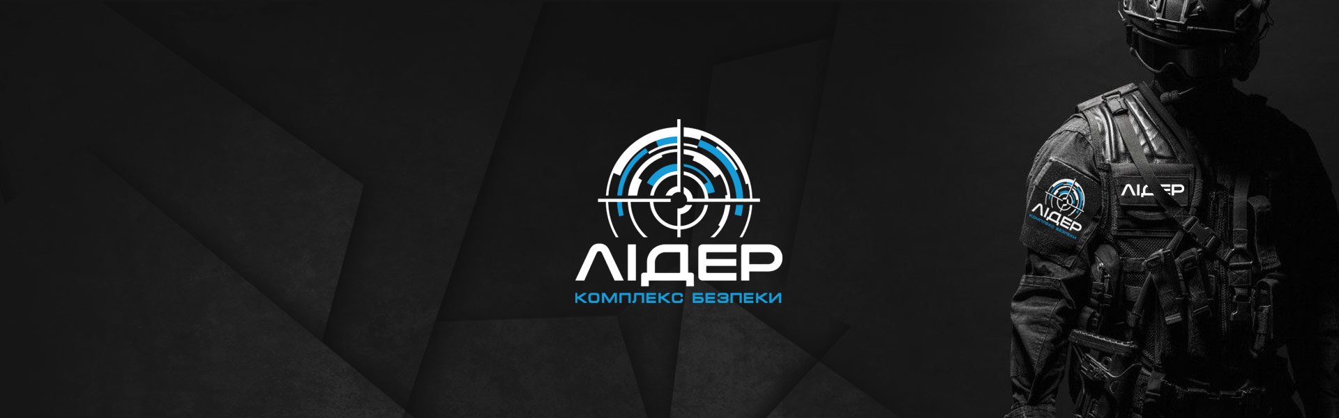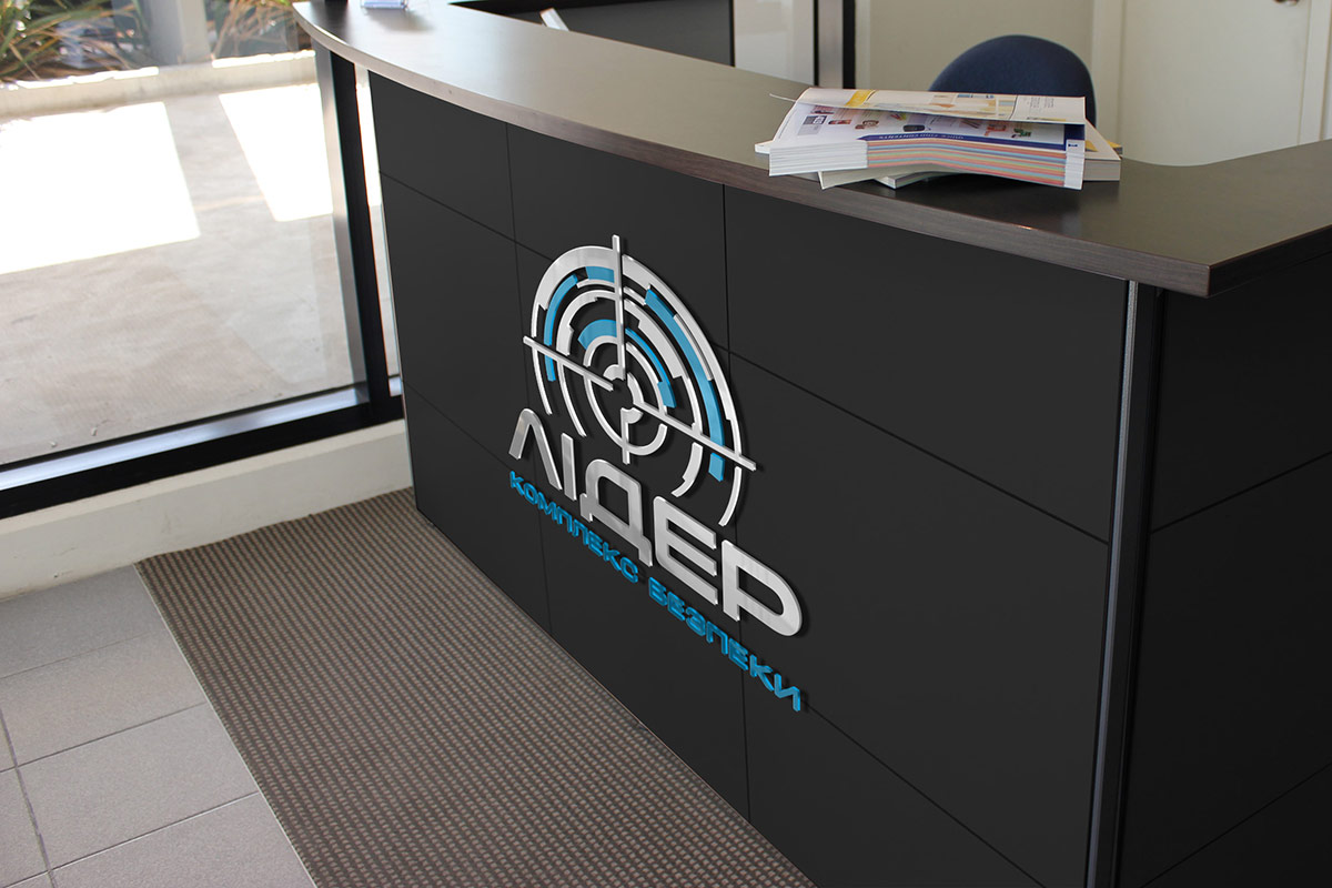 Шрифтове написання назви “ЛІДЕР” у логотипі розроблено дизайнерами нашої студії та адаптовано під загальний стиль бренду. Для розшифровки діяльності було прийнято використовувати в логотипі дескриптор "КОМПЛЕКС БЕЗПЕКИ".