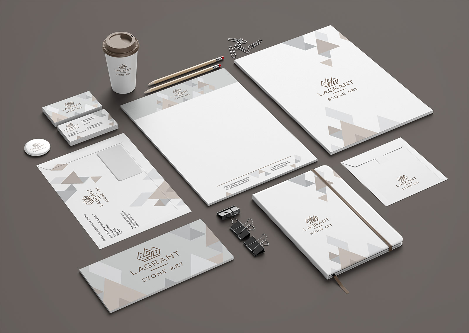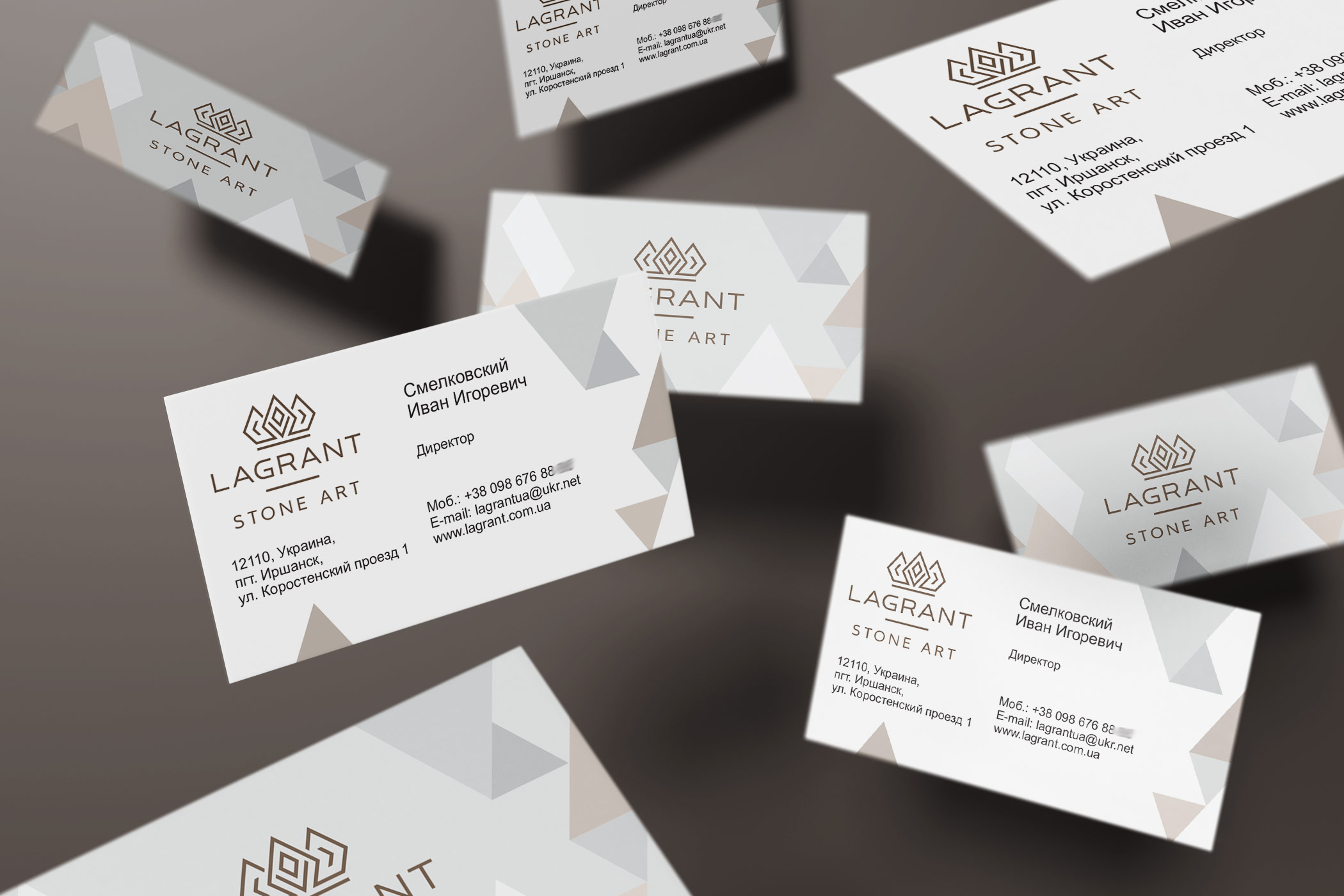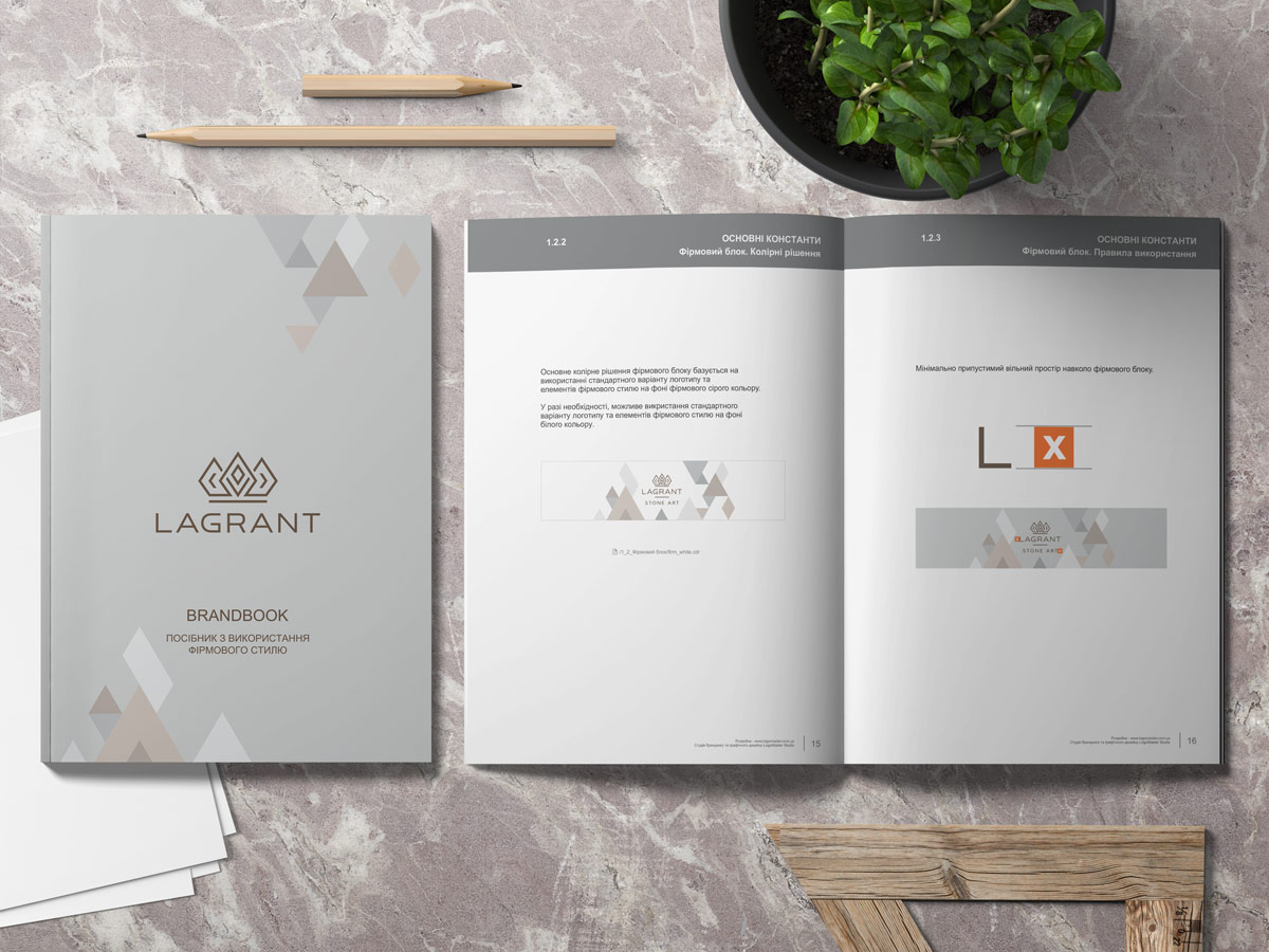 Шрифтове написання назви “LAGRANT” розроблено дизайнерами нашої студії та виконане у строгому стилі.