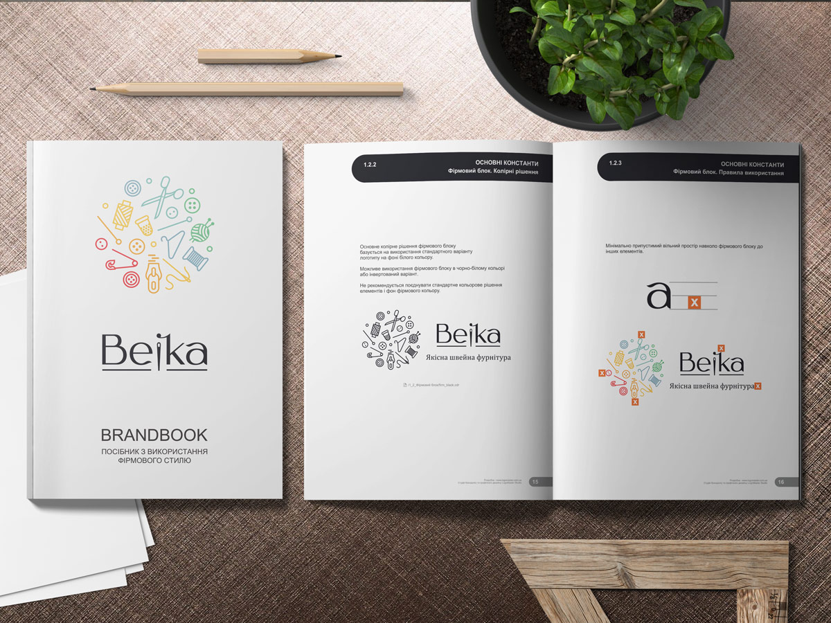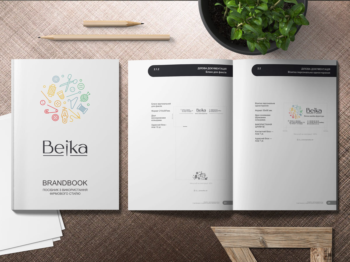 Шрифтове написання назви “Beika” розроблено дизайнерами нашої студії та виконане у строгому стилі.