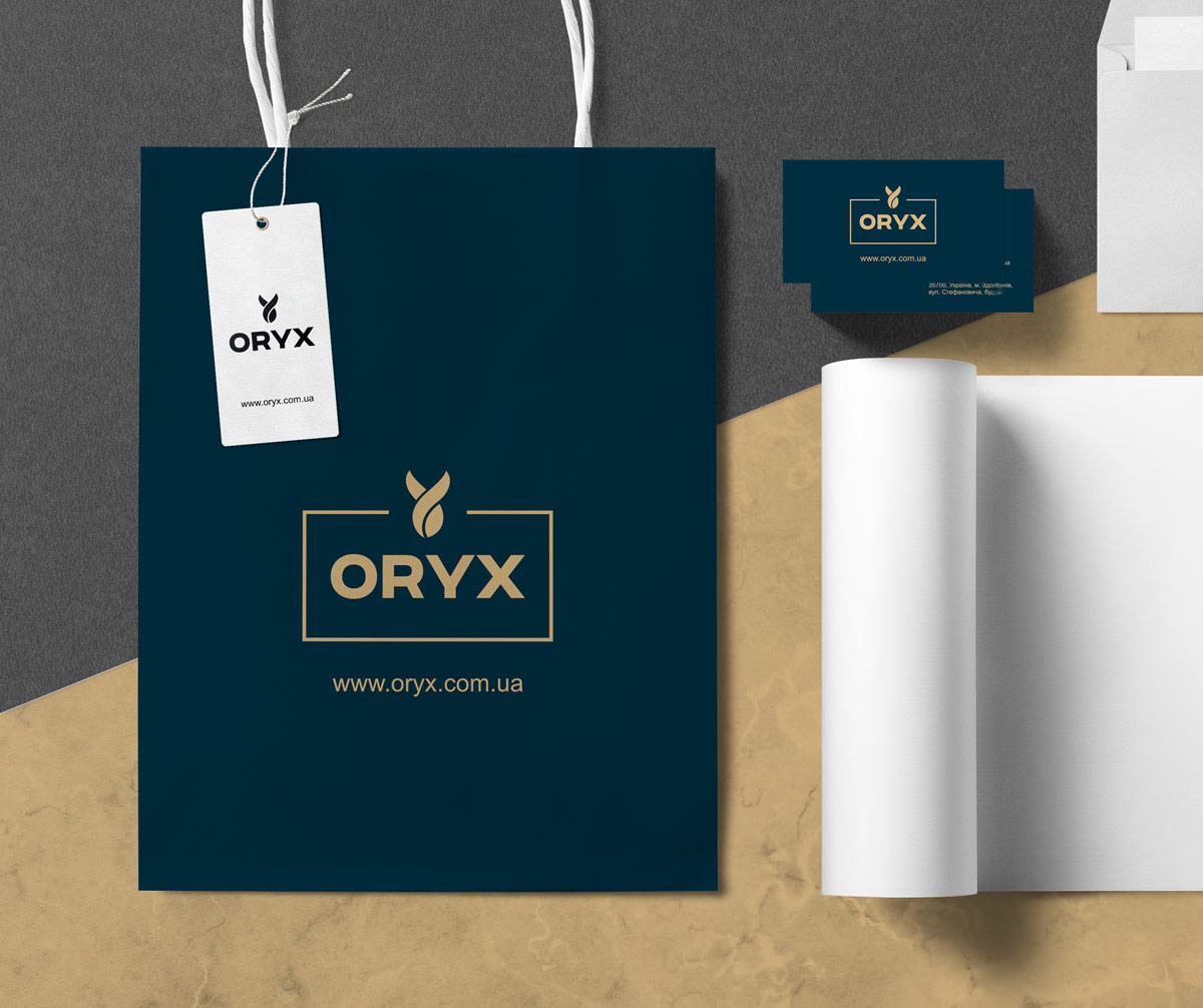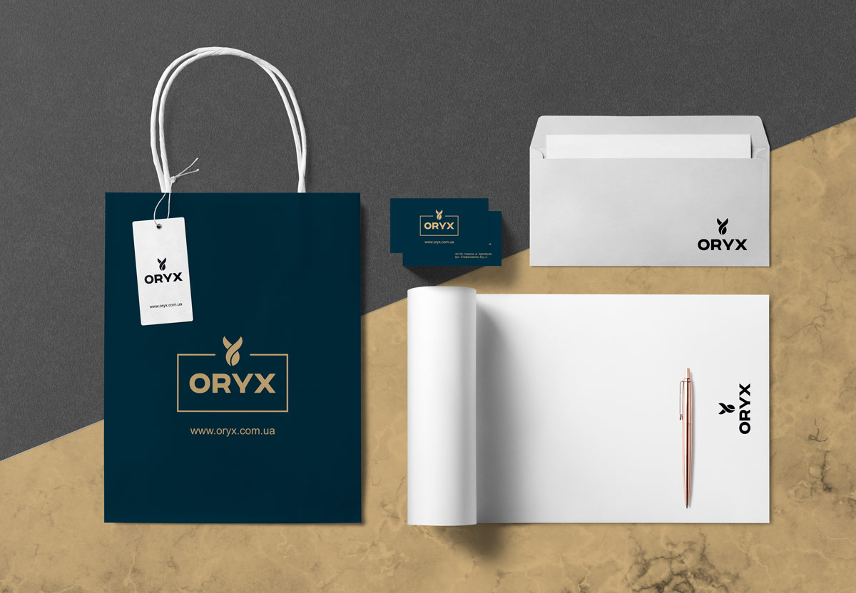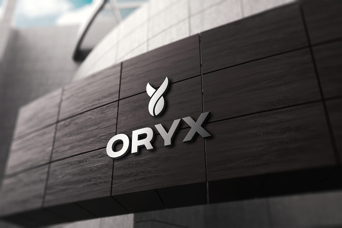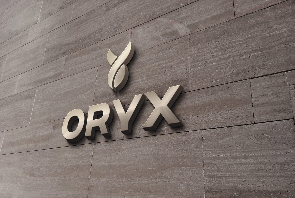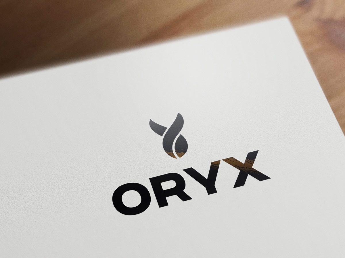 Після детального обговорення різних варіантів Замовник затвердив наведений нижче логотип. Знак розробленого логотипу виконано у вигляді абстрактної фігури – голови антилопи. Шрифтове написання назви “ORYX” розроблено дизайнерами нашої студії та виконане у строгому стилі.