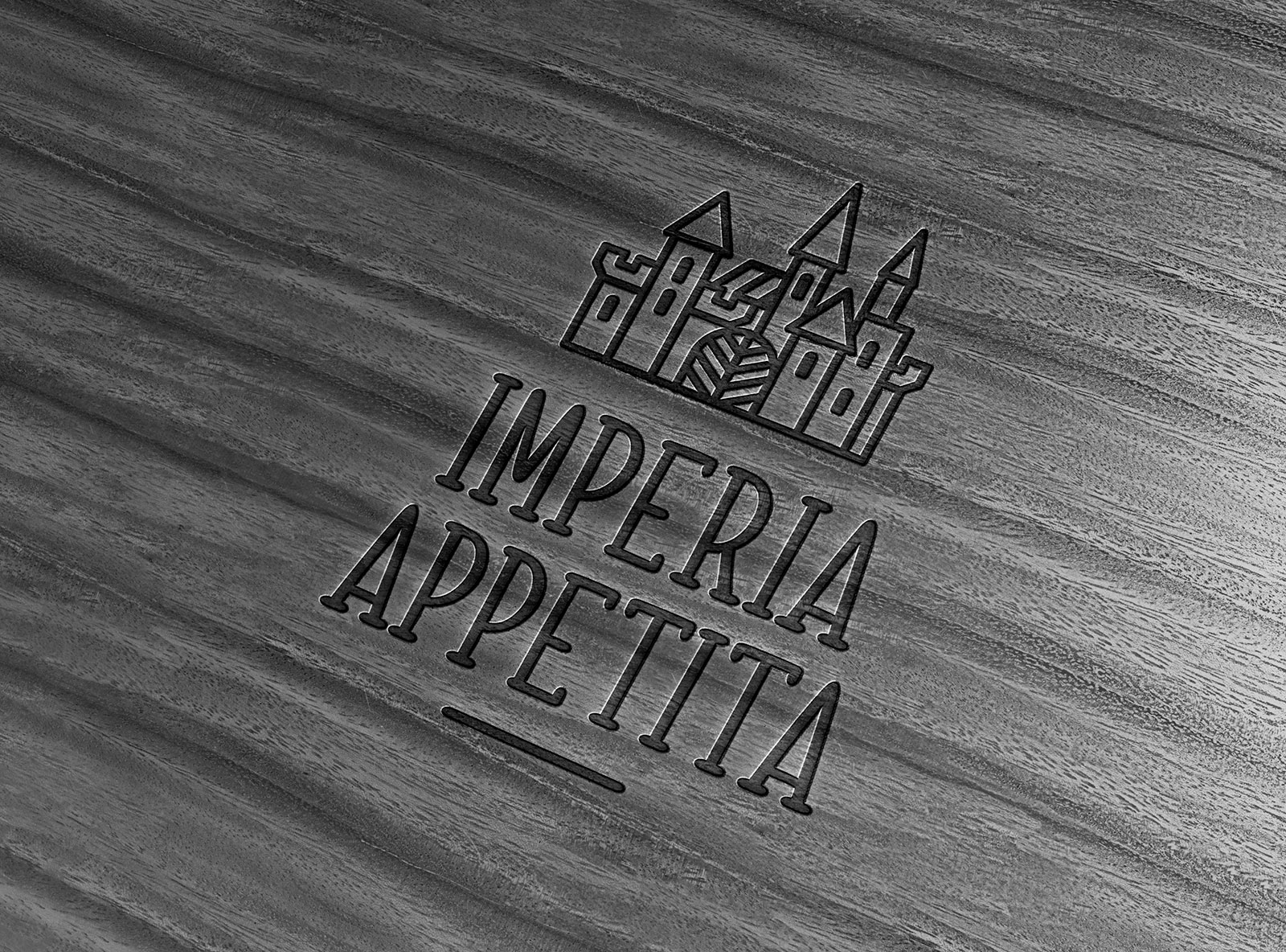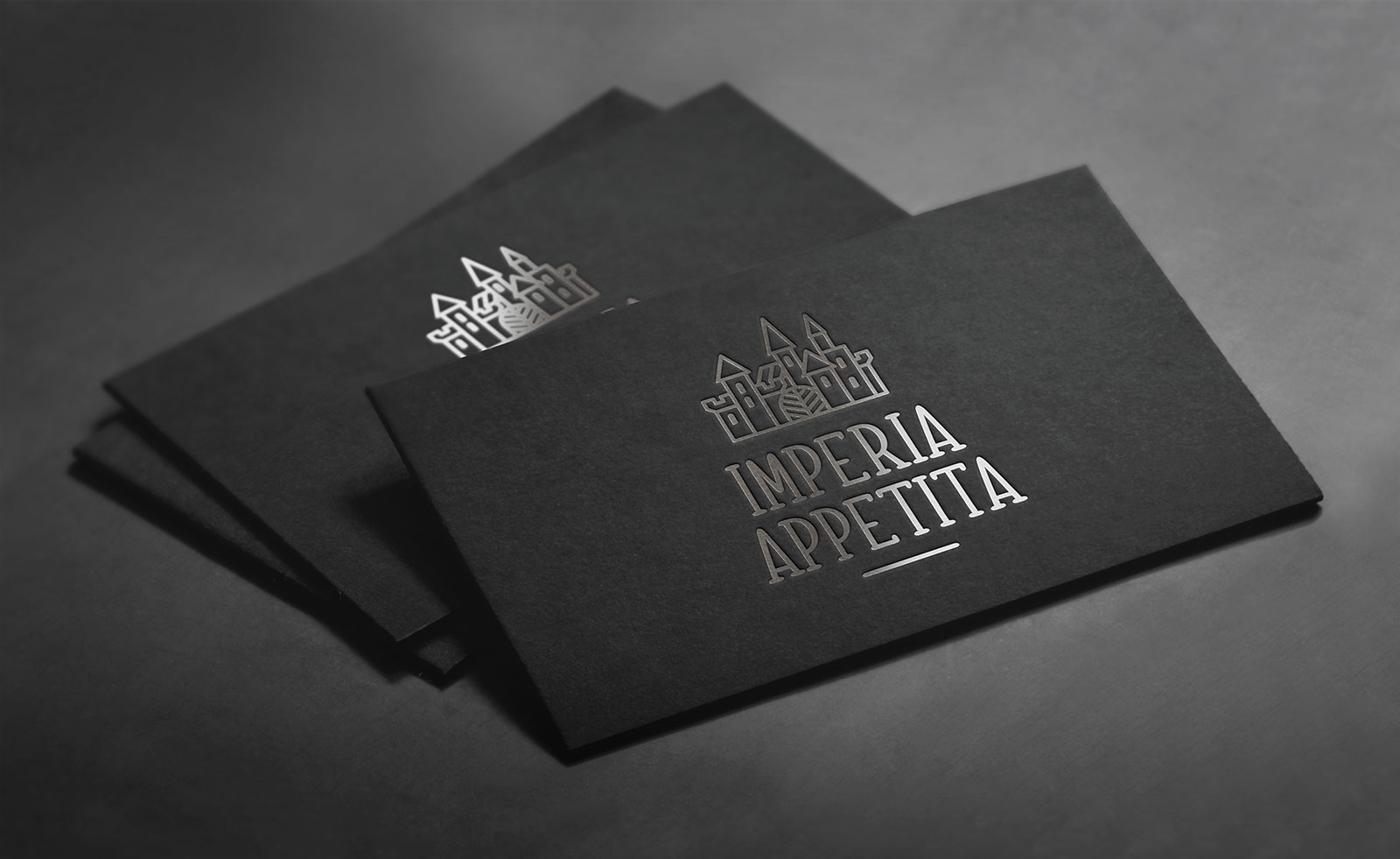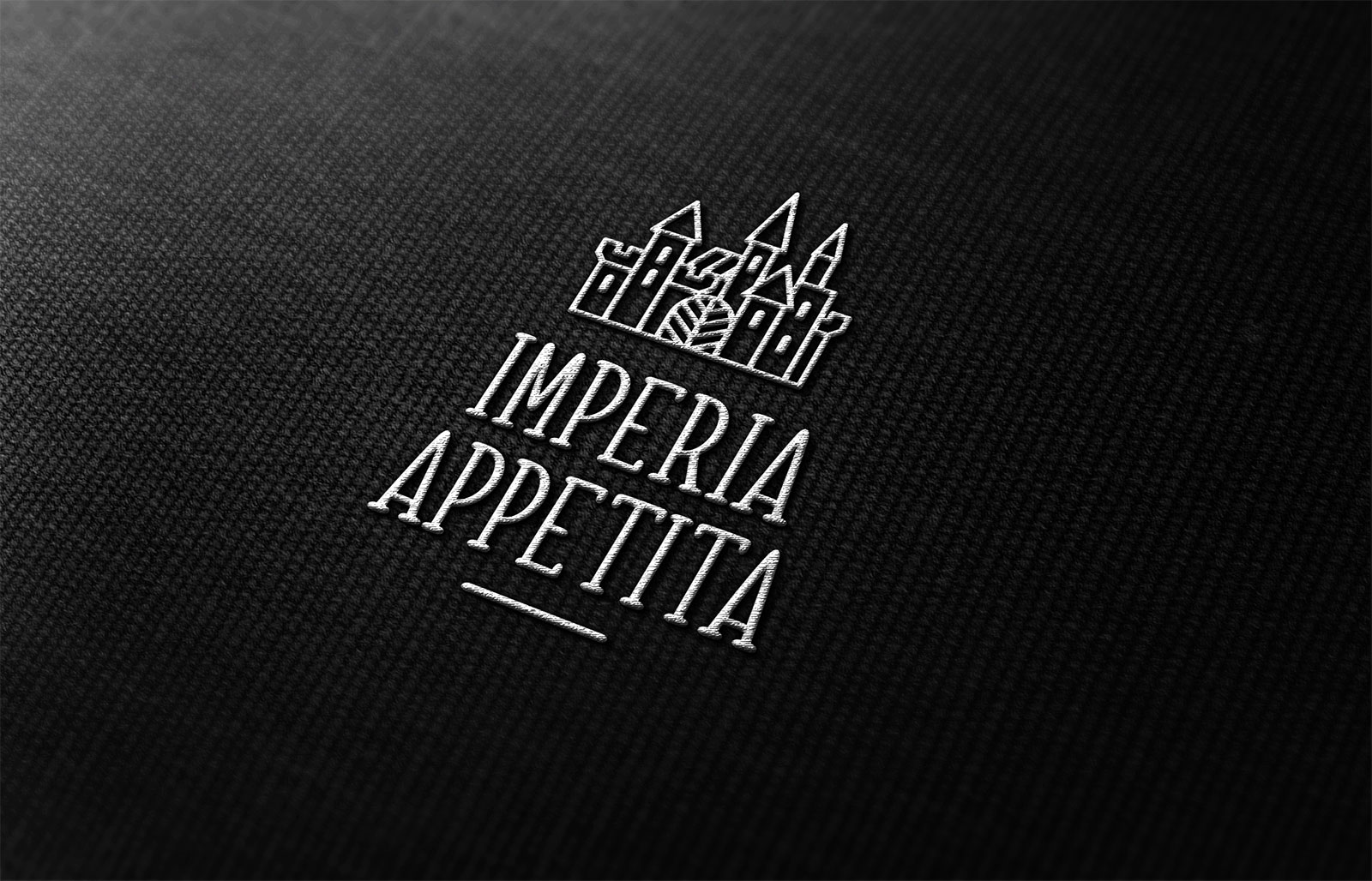 Шрифтове написання назви “IMPERIA APPETITA” розроблено дизайнерами нашої студії та виконане у строгому стилі.