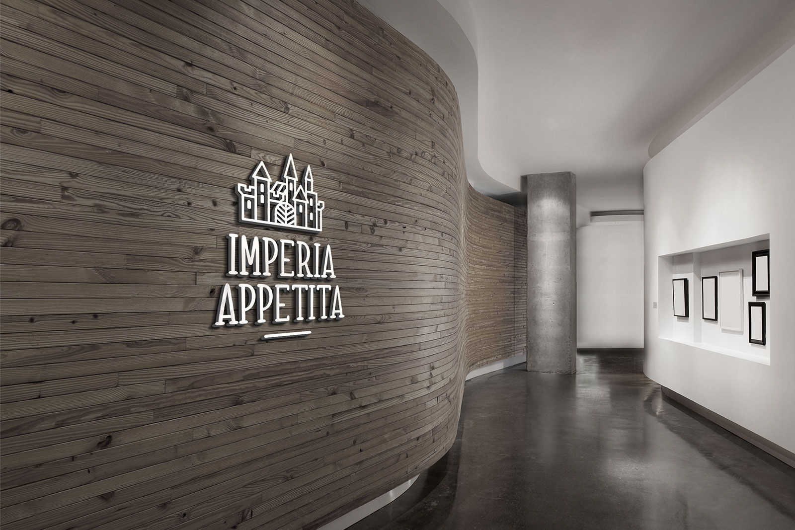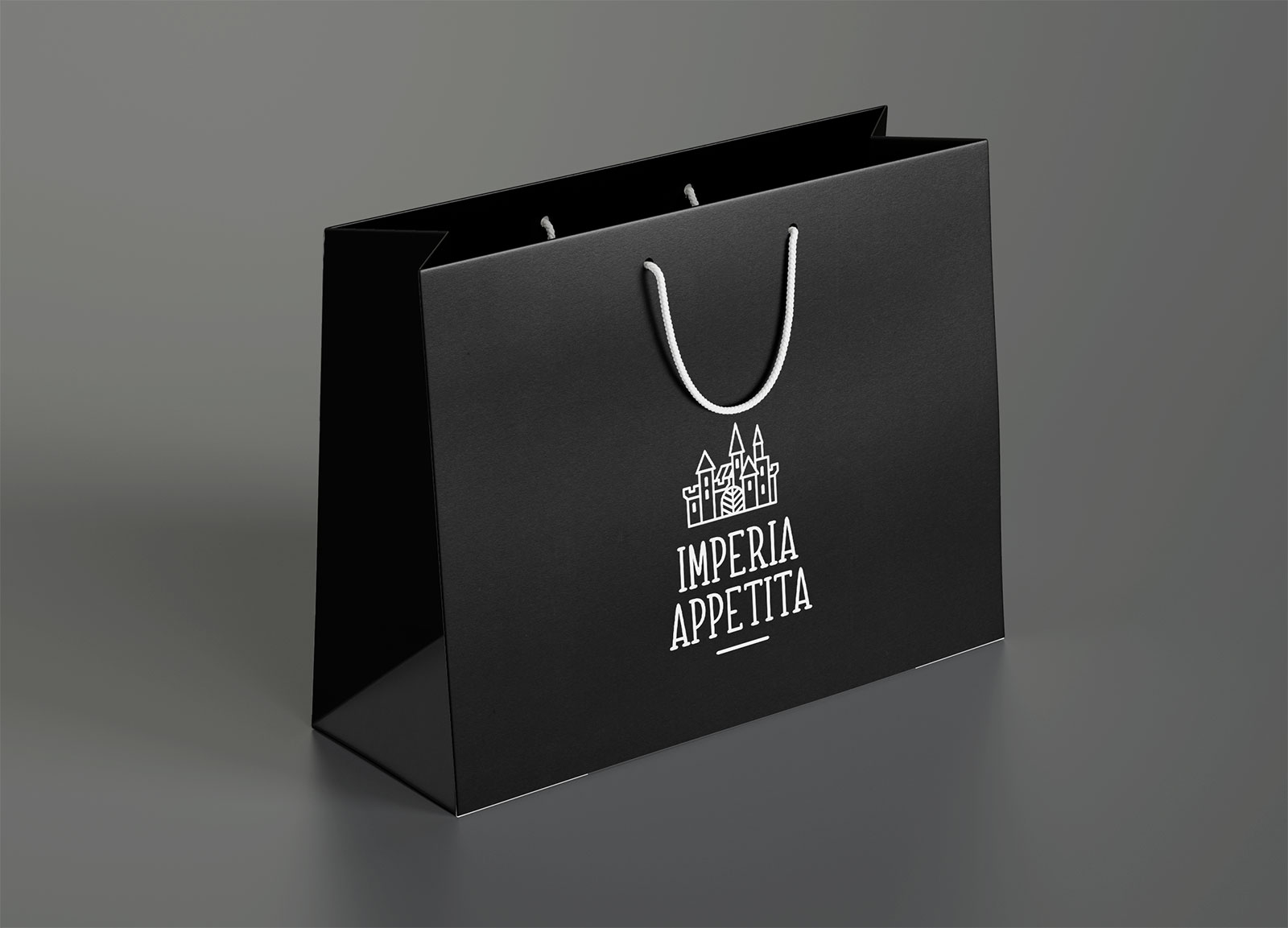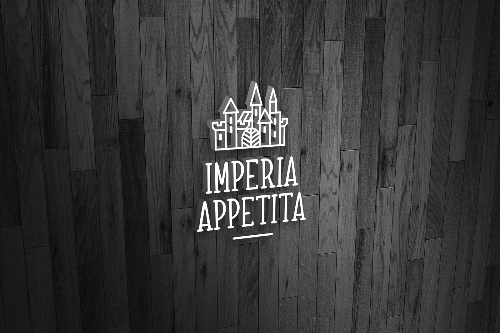 Шрифтове написання назви “IMPERIA APPETITA” розроблено дизайнерами нашої студії та виконане у строгому стилі.