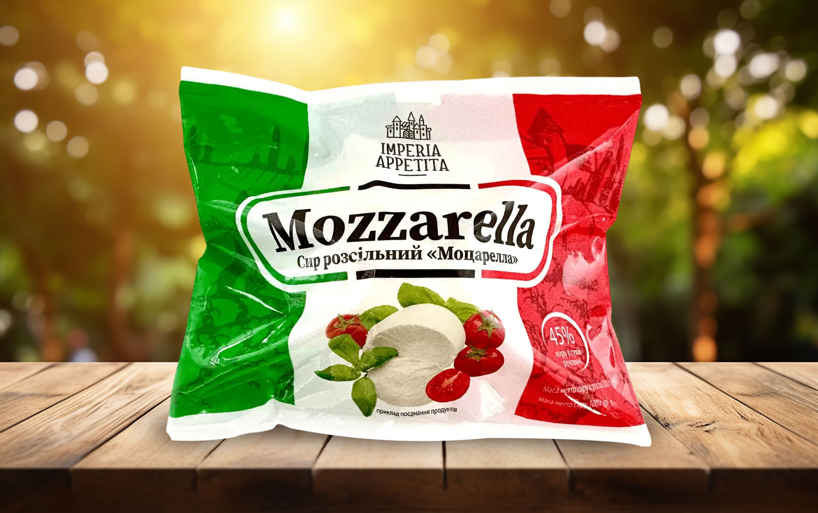 Для нового продукту: свіжої моцарели преміальної якості — було створено яскравий, емоційний дизайн упаковки, що поєднує в собі національні мотиви, автентичність і апетитний вигляд.