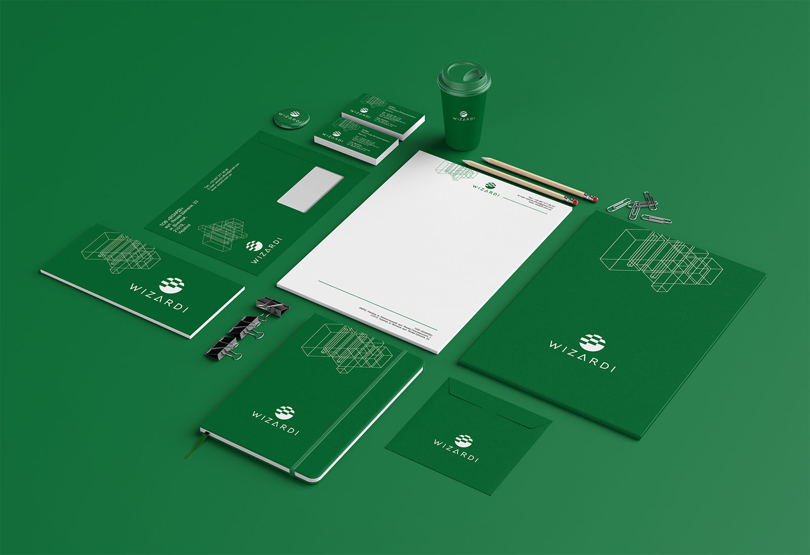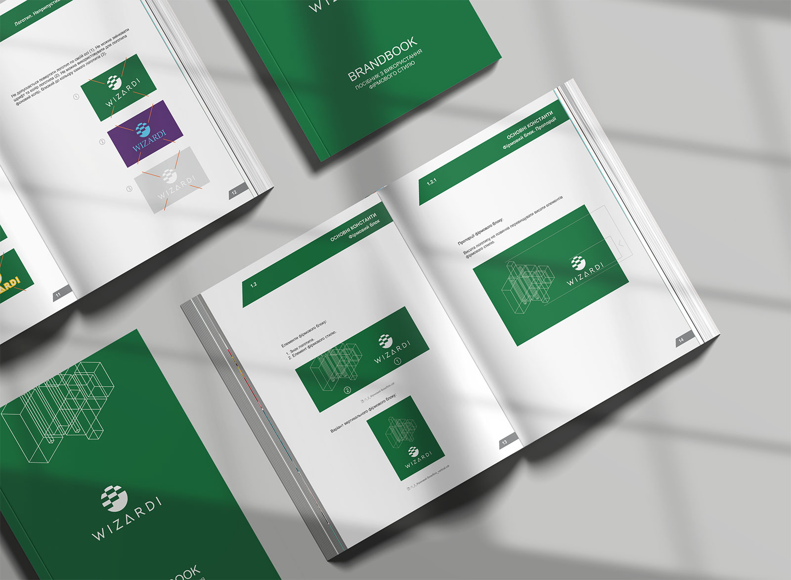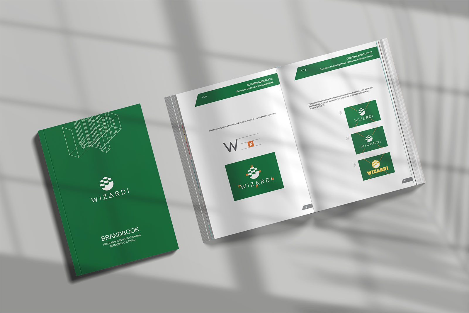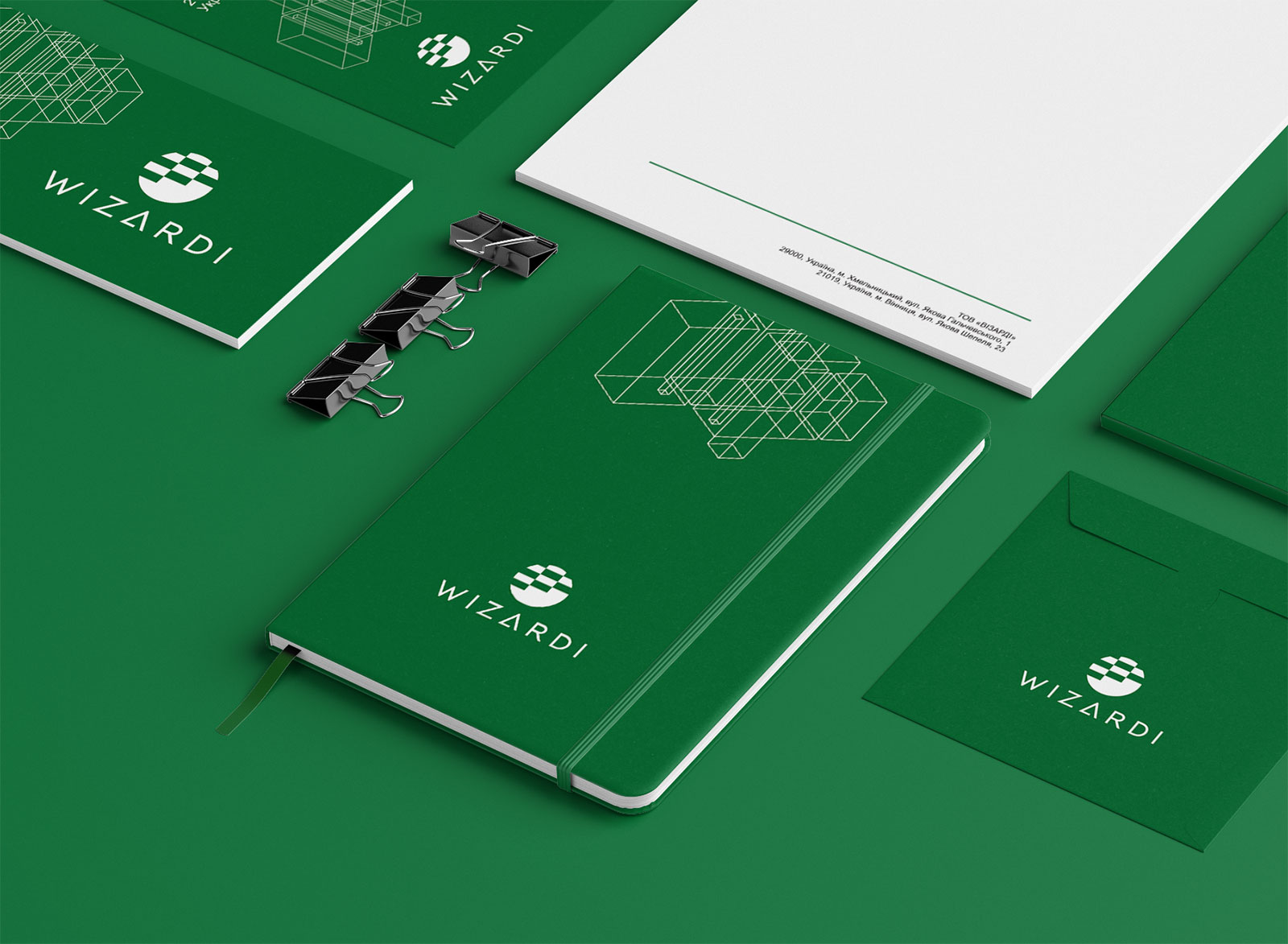 Шрифтове написання назви “WIZARDI” розроблено дизайнерами нашої студії та виконане у строгому стилі.