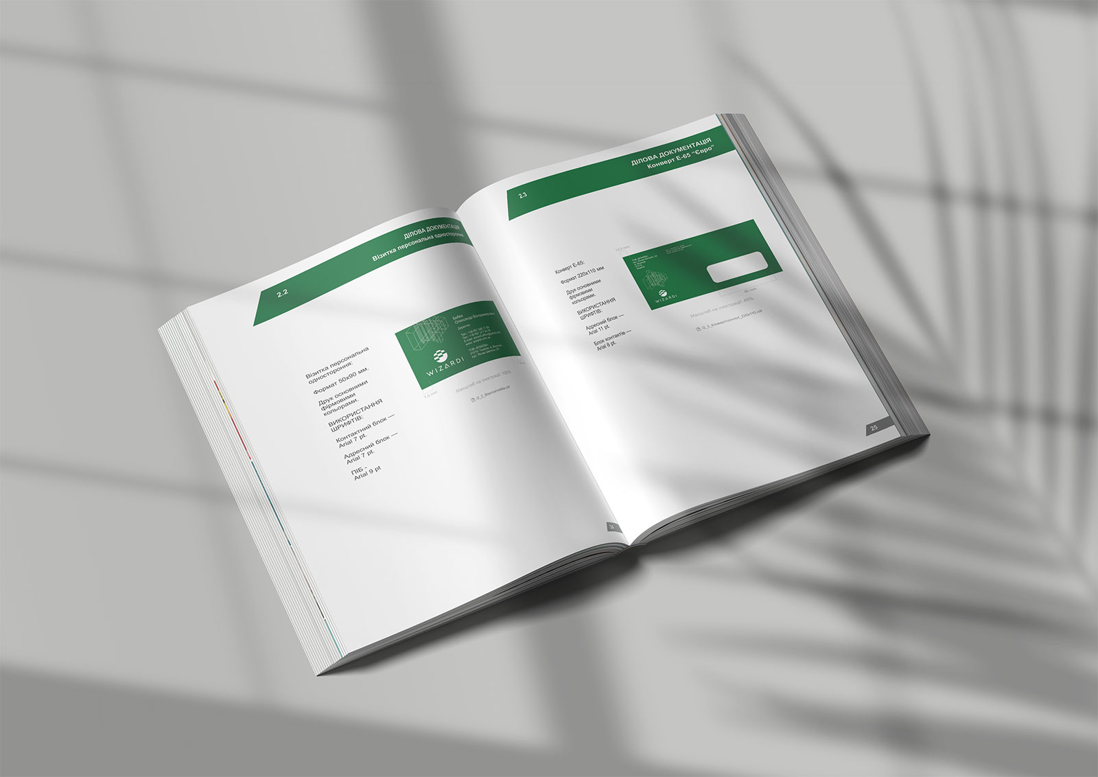 Протягом тижня було виконано завдання щодо створення та погодження бренд бука. Особливу увагу Замовник просив приділити опису логотипу та його нанесенню на різні площини, опису фірмового стилю, з яким відвідувач зустрінеться на транспорті компанії, в інтер'єрі офісу та інше.