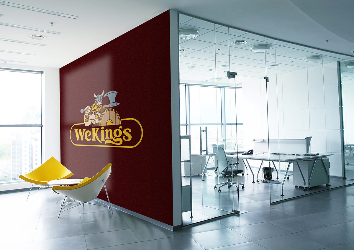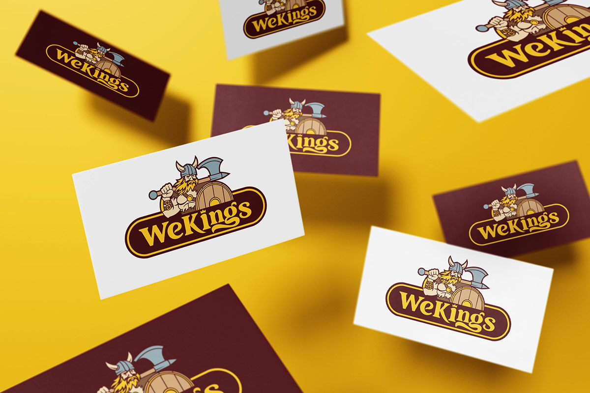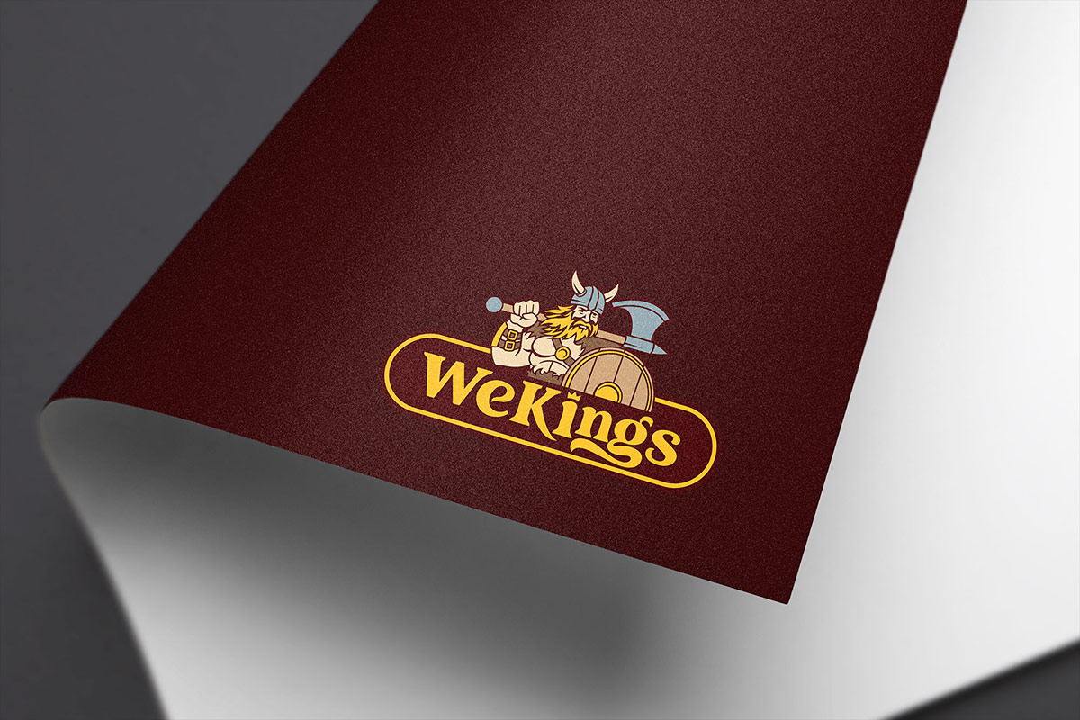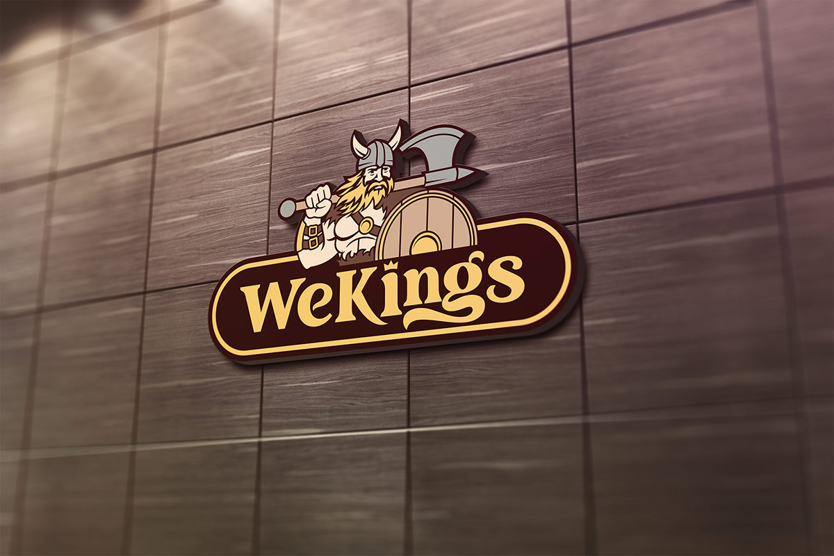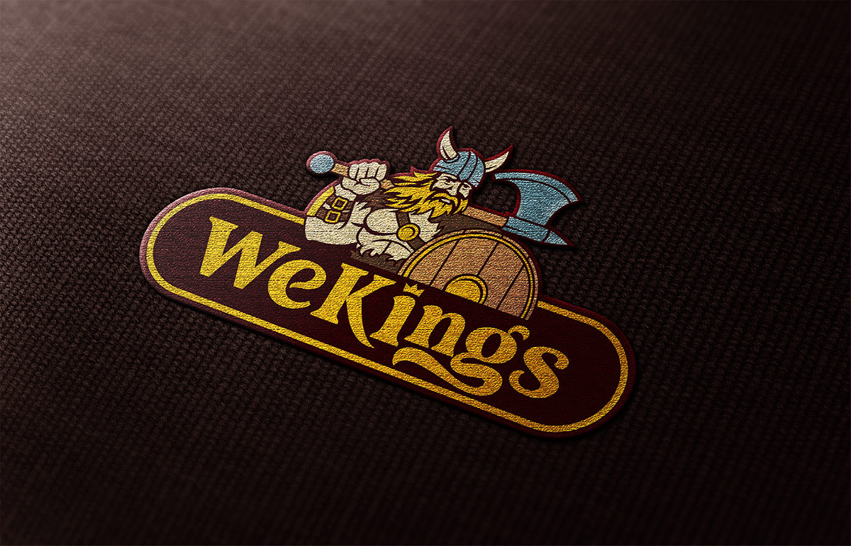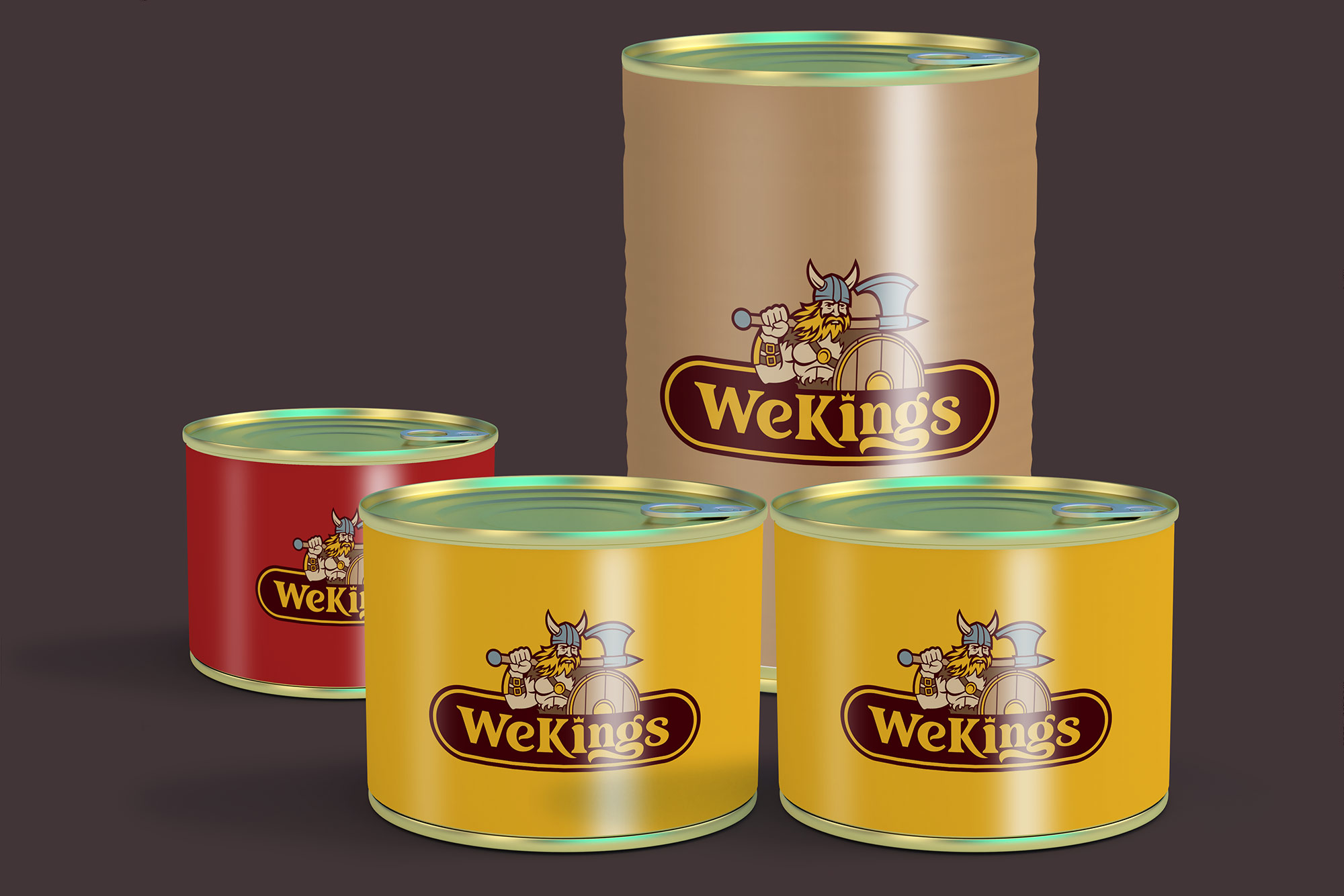 Після детального обговорення різних варіантів Замовник затвердив наведений нижче логотип, виконаний у вигляді мужнього персонажа – вікінга, який відображає серйозну якість бренду та скандинавську тематику країни – виробника консервів. Шрифтове написання назви WeKings розроблено дизайнерами нашої студії.