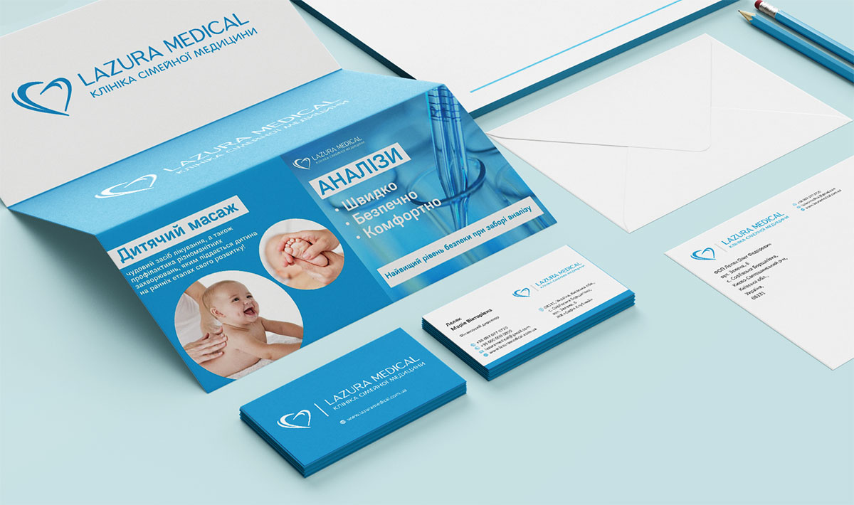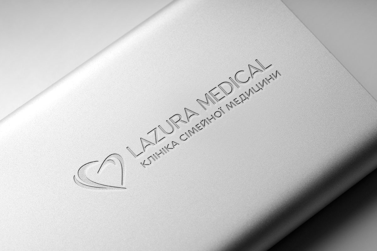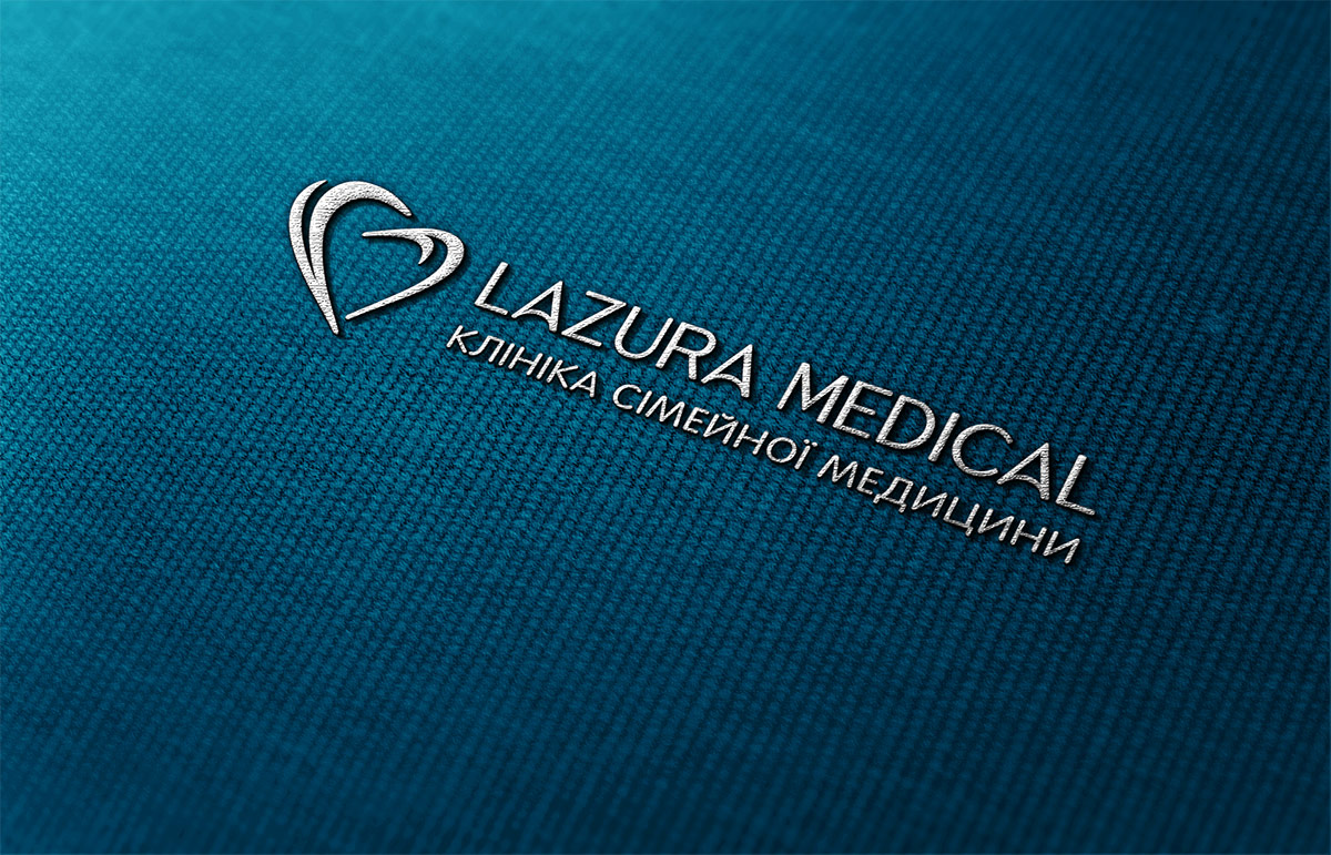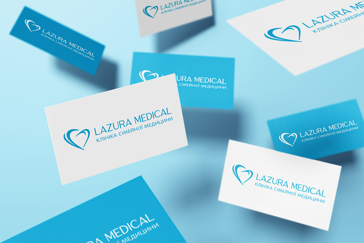 Шрифтове написання назви “LAZURA” розроблено дизайнерами нашої студії та виконане у строгому стилі. Для розшифровки діяльності було прийнято використати у логотипі дескриптор “клініка сімейної медицини”.