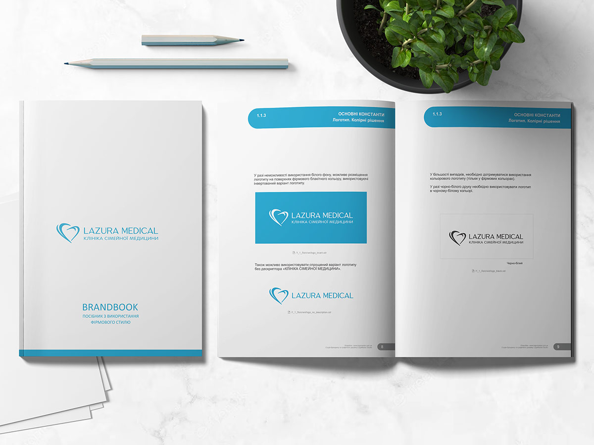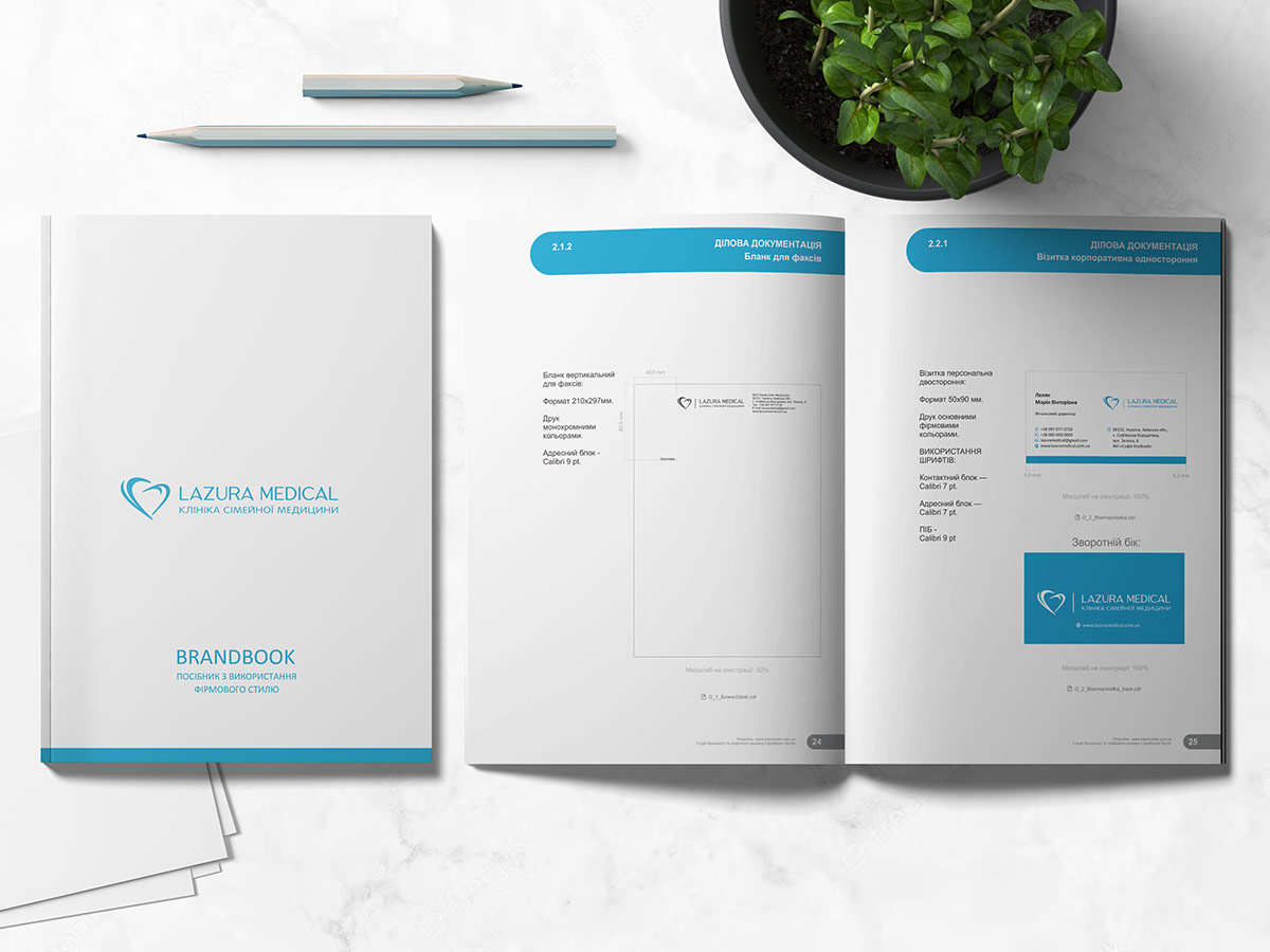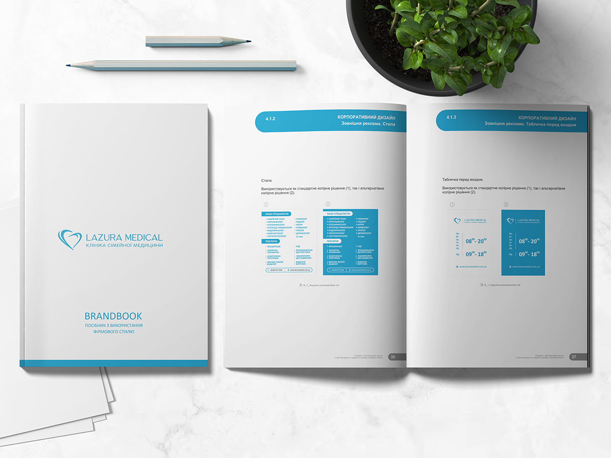 Розробка назви, логотипу, фірмового стилю та бренд буку для клініки сімейної медицини (Україна, м.Київ, Софіївська Борщагівка).