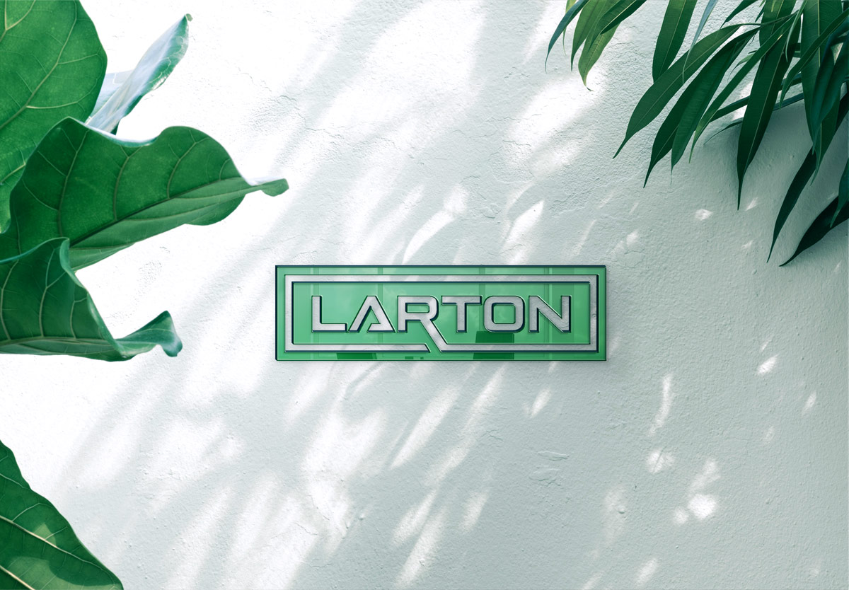 Після детального обговорення різних варіантів Замовник затвердив наведений нижче шрифтовий логотип. Зелений колір у логотипі відображає екологічність та природність продукції. Крім того, саме цей колір прийнятий у всьому світі, як найбезпечніший. Шрифтове написання назви “LARTON” у логотипі розроблено дизайнерами нашої студії та адаптовано під загальний стиль бренду.