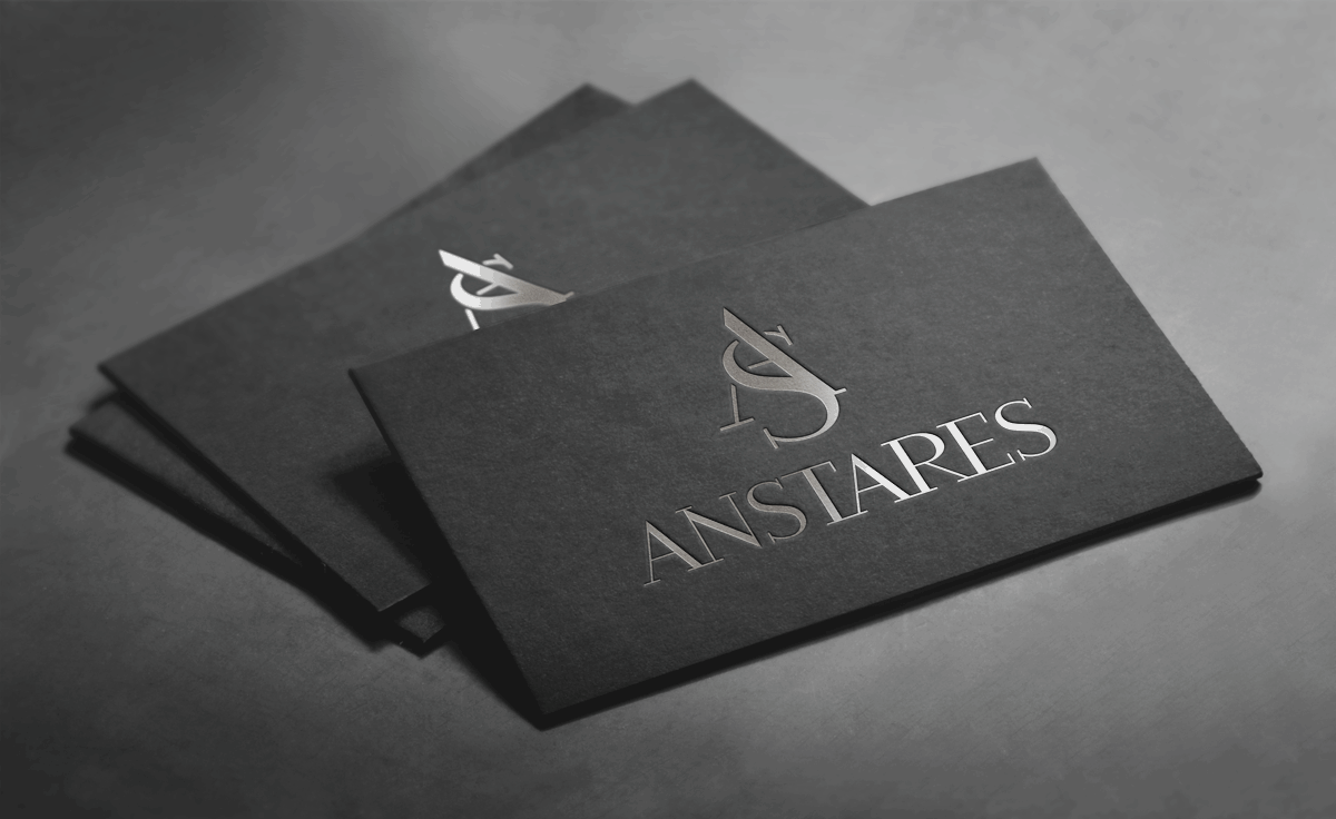 Після детального обговорення різних варіантів Замовник затвердив наведений нижче шрифтовий логотип. Чорний колір логотипу відображає строгість і чудово поєднується з усіма іншими кольорами. Шрифтове написання назви "ANSTARES" розроблено дизайнерами нашої студії.