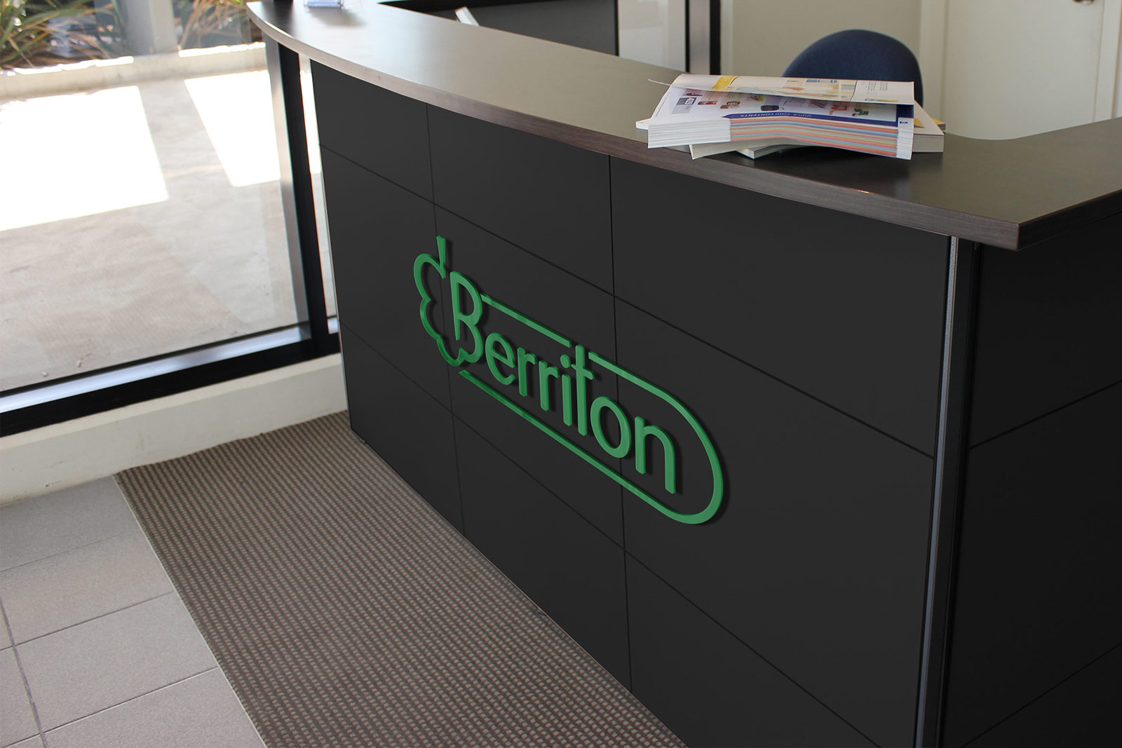 Шрифтове написання назви “Berriton” розроблено дизайнерами нашої студії та виконане у строгому стилі.