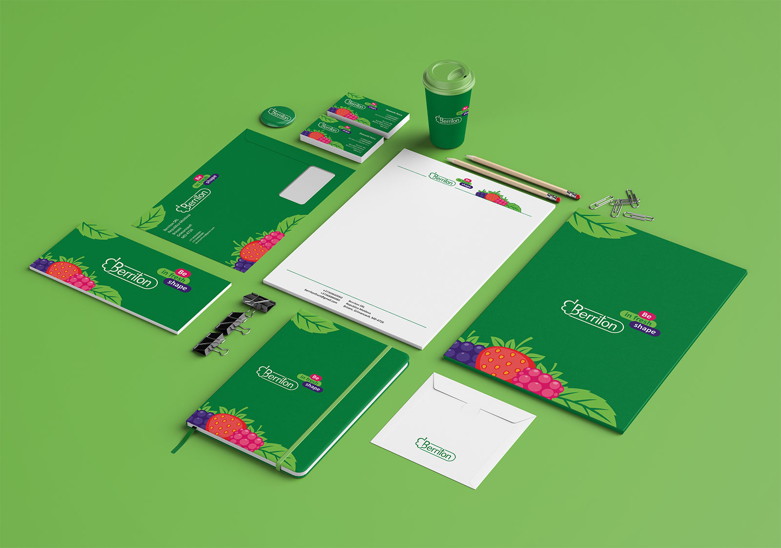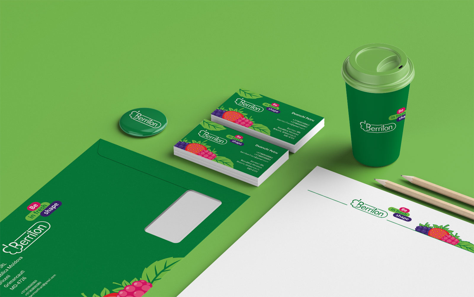 Особливу увагу хочеться приділити фірмовому стилю, який дизайнери студії пропрацювали досить ретельно. В рамках замовлення розроблено стандартний набір документів: візитні картки, конверти, фірмовий бланк. Розроблений фірмовий стиль, що складається з красивих свіжих ягід, доповнює логотип, створюючи єдиний та універсальний блок інформації. Основною відмінністю стилю є яскравість і запам'ятовуваність.