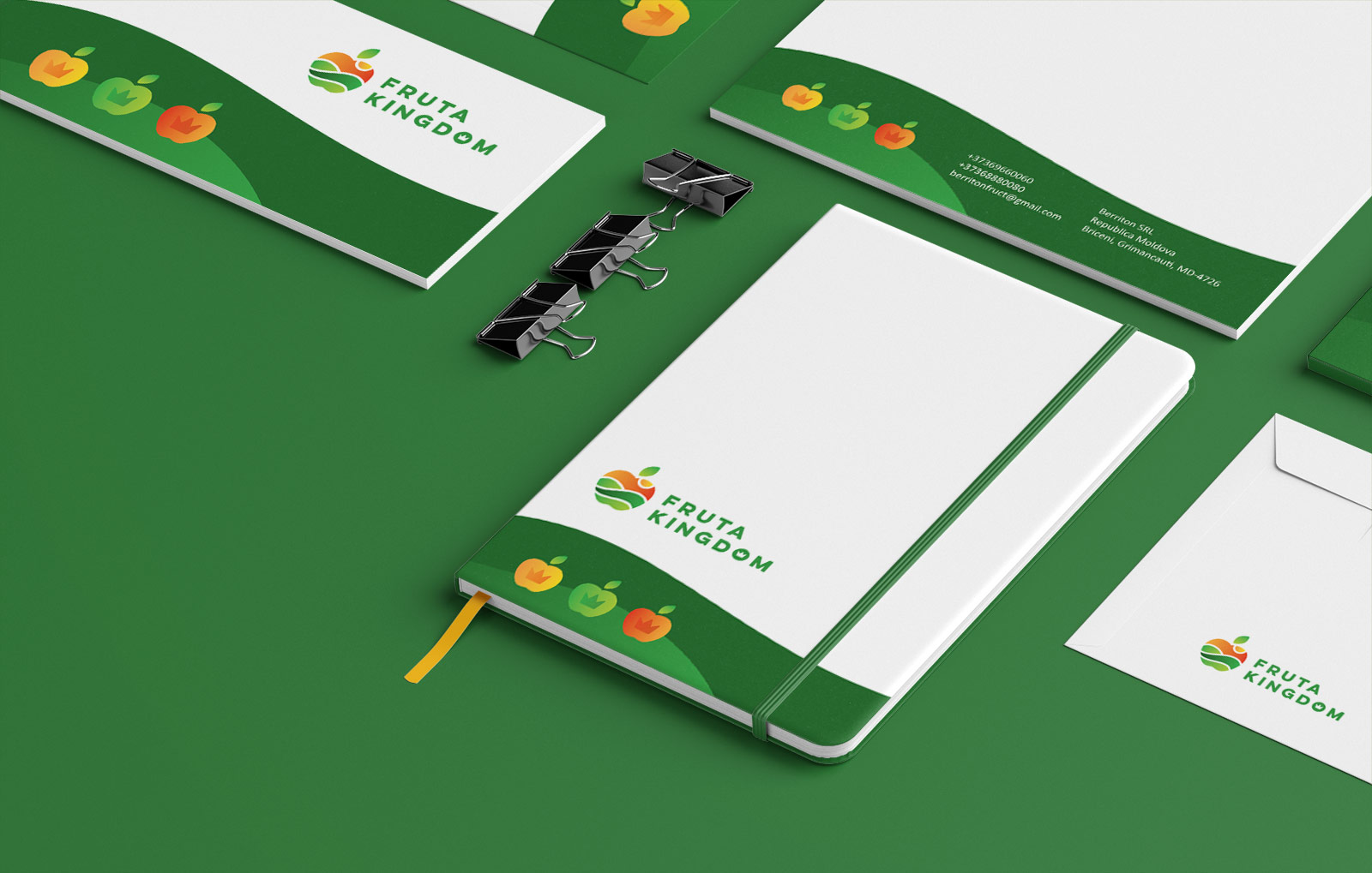 Шрифтове написання назви “Fruta Kingdom” розроблено дизайнерами нашої студії та виконане у строгому стилі.
