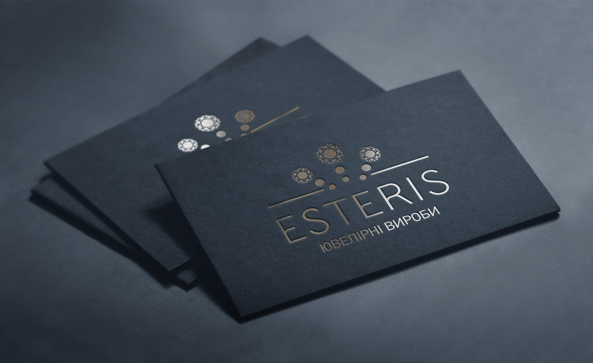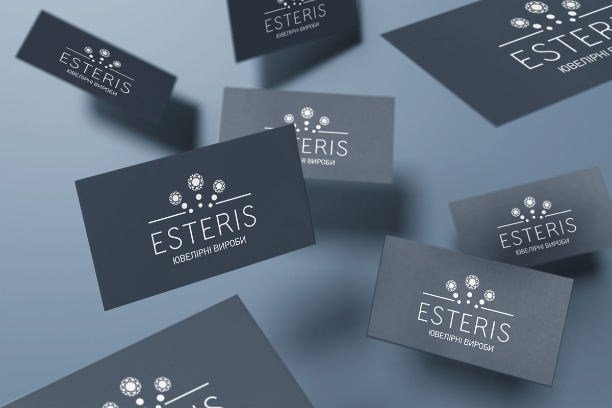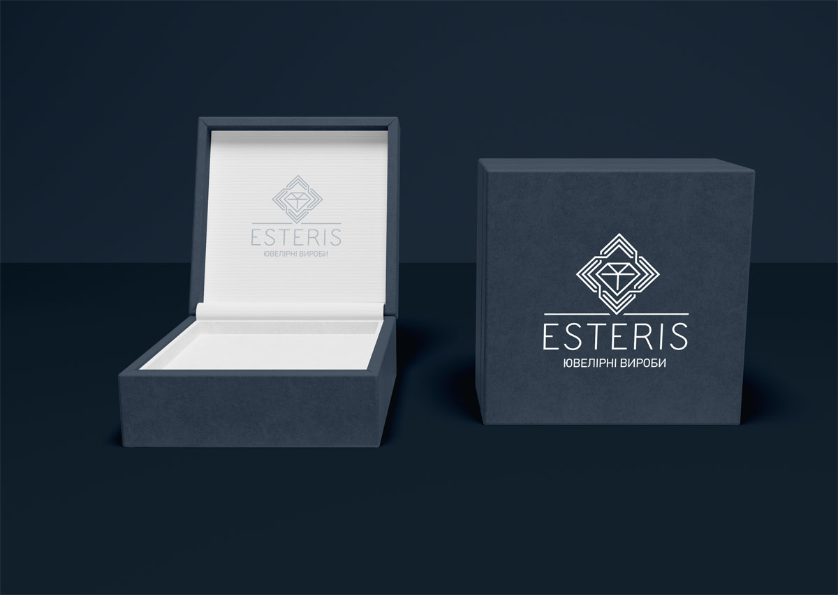 Шрифтове написання назви “ESTERIS” у логотипі розроблено дизайнерами нашої студії та адаптовано під загальний стиль бренду. Для розшифрування діяльності було прийнято використовувати у логотипі дескриптор “ЮВЕЛІРНІ ВИРОБИ”.