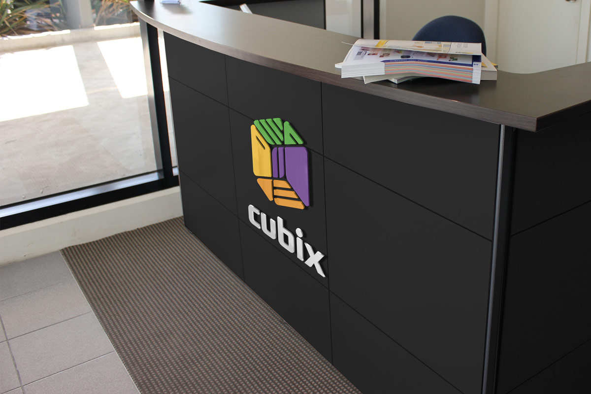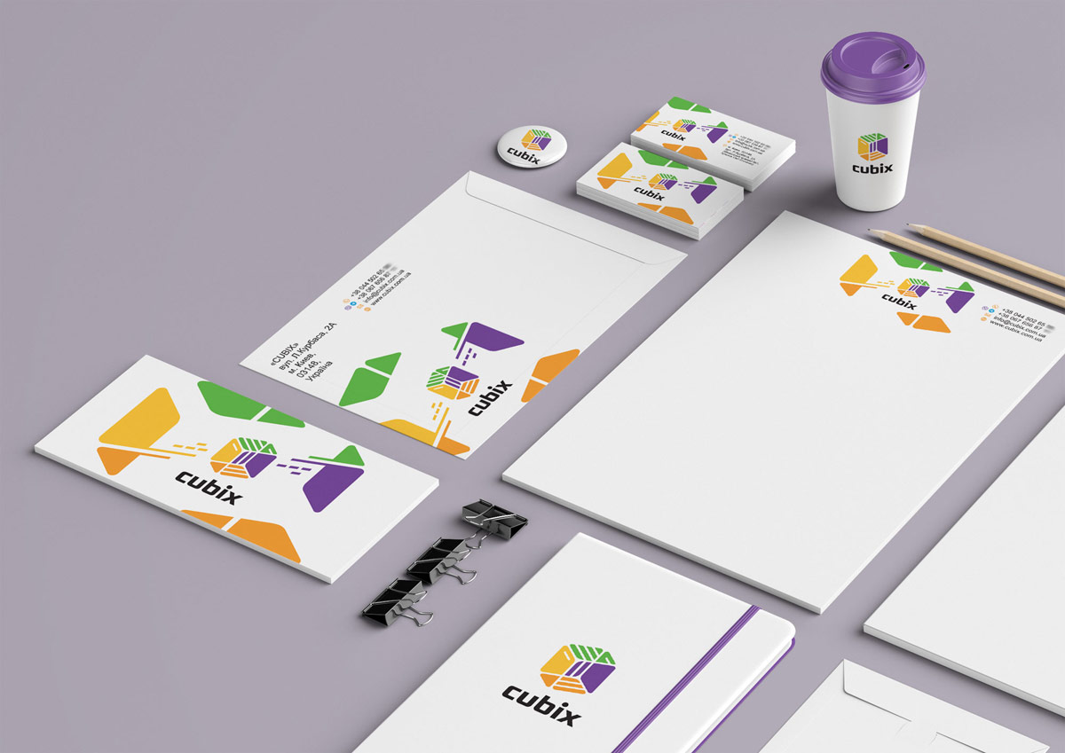 Шрифтове написання назви “CUBIX” розроблено дизайнерами нашої студії та виконане у строгому стилі.