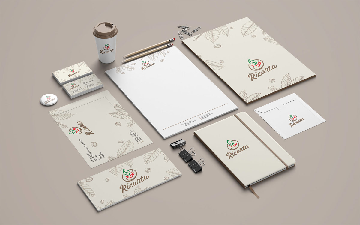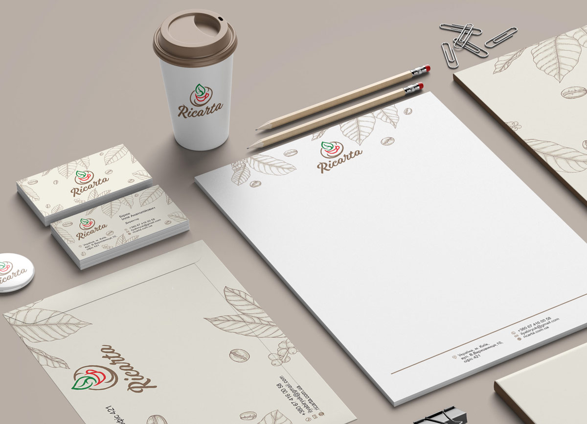 Шрифтове написання назви “Ricarta” розроблено дизайнерами нашої студії та виконане у строгому стилі.
