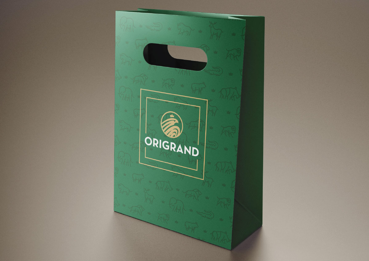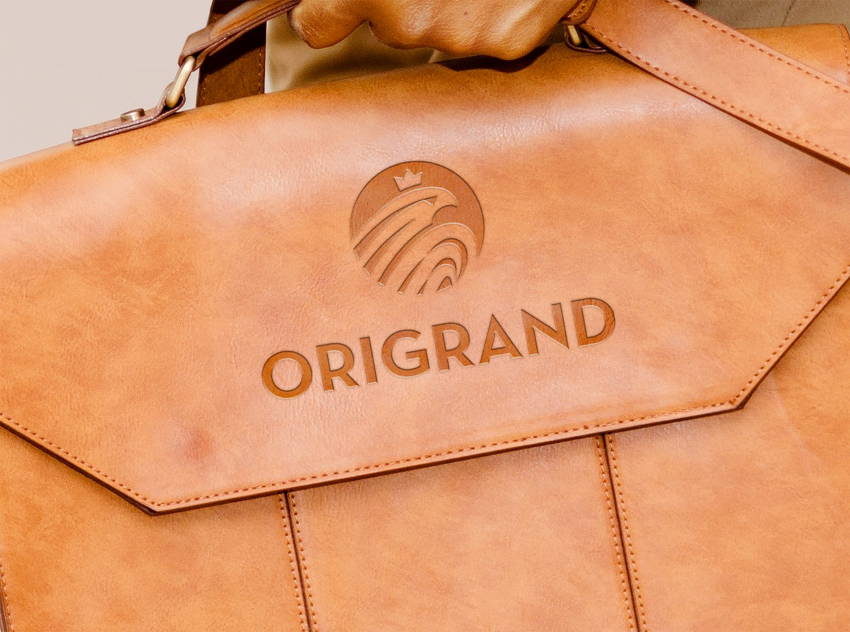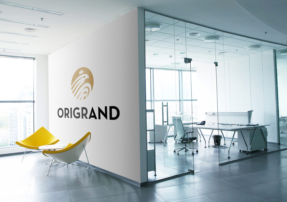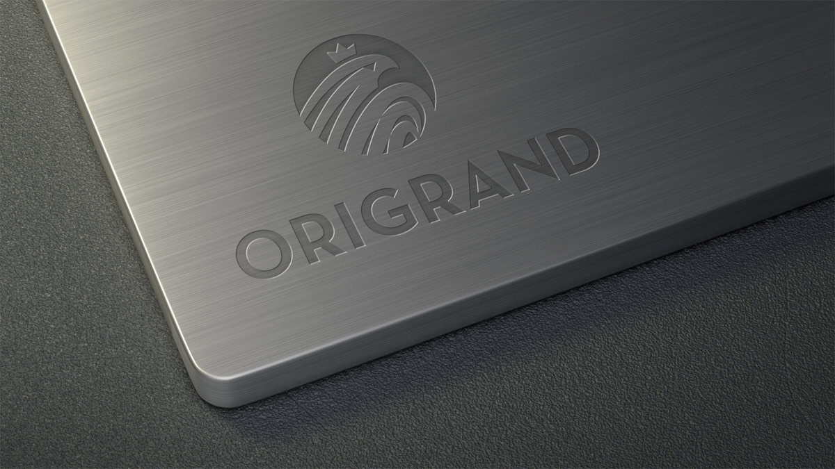 Шрифтове написання назви “ORIGRAND” розроблено дизайнерами нашої студії та виконане у строгому стилі.