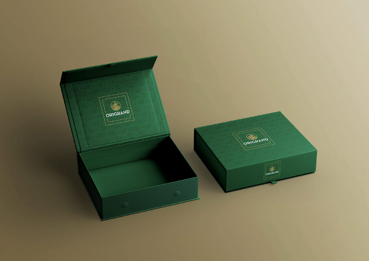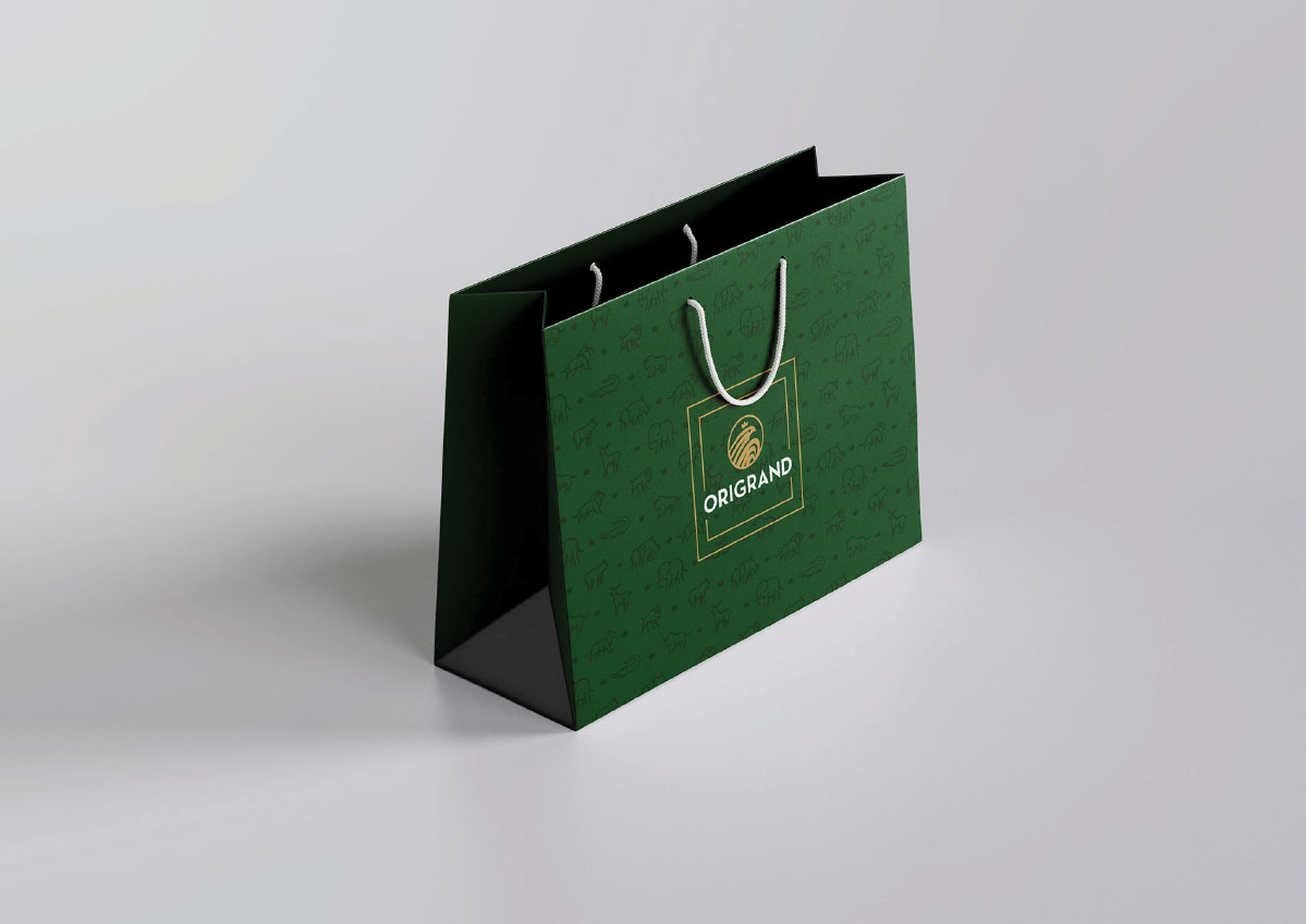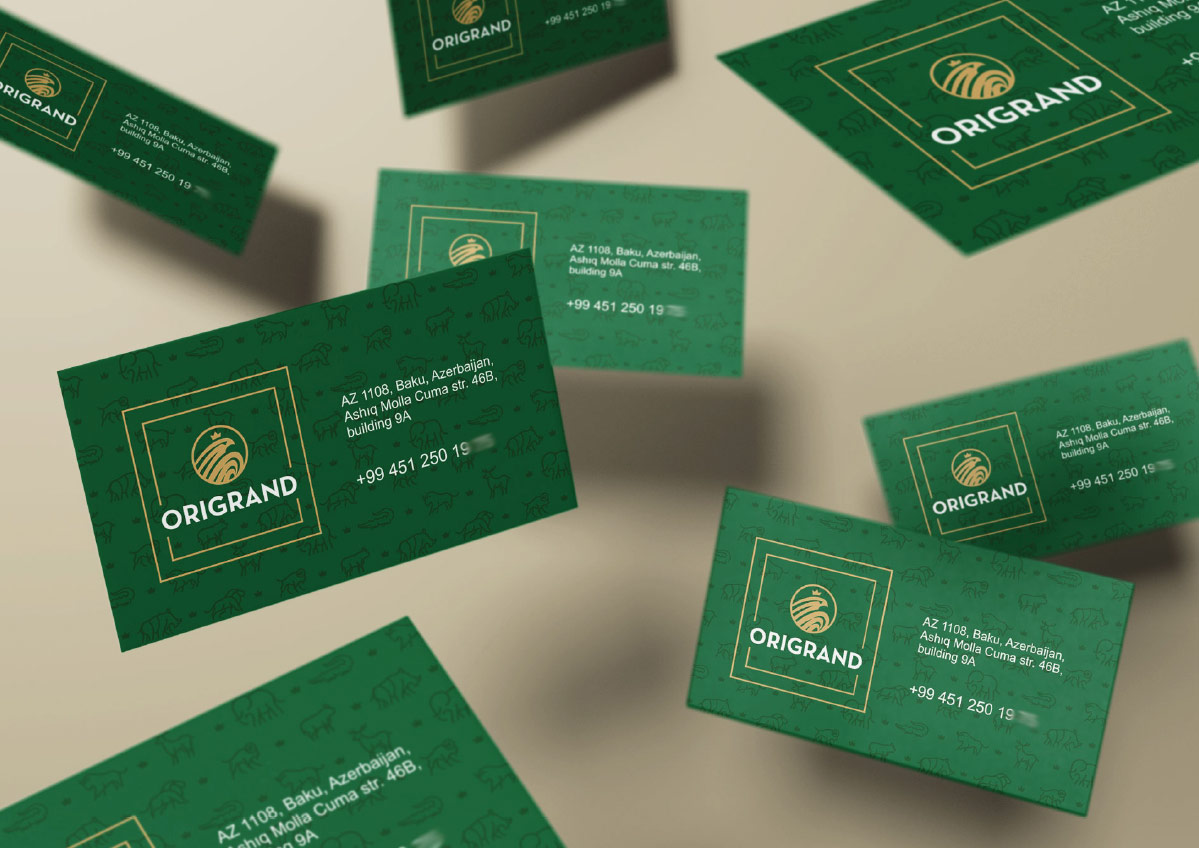 Шрифтове написання назви “ORIGRAND” розроблено дизайнерами нашої студії та виконане у строгому стилі.