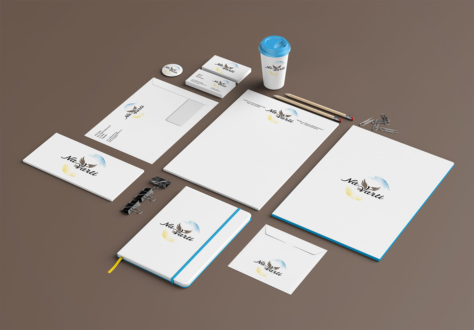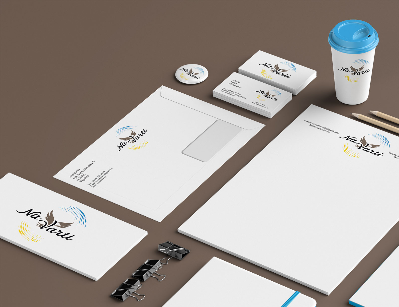 Шрифтове написання назви “NaVarti” розроблено дизайнерами нашої студії та виконане у строгому стилі.