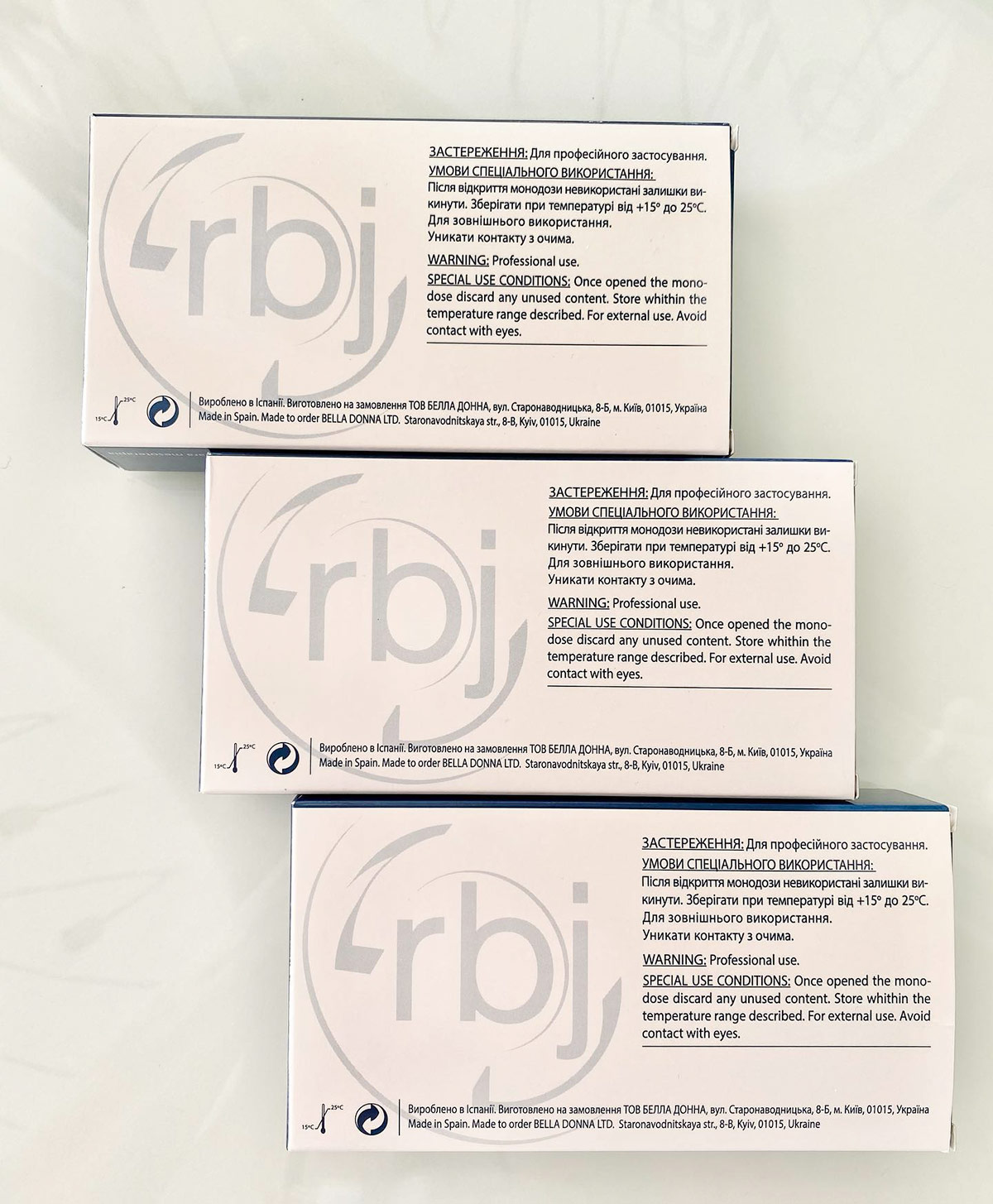 “RBJ” – препарати, розроблені у сучасному дослідному центрі Барселони (Іспанія). Іспанські вчені відібрали найкращі компоненти: вітаміни, пептиди, амінокислоти, мікро- та макроелементи, полісахариди та створили новітні продукти, які повністю відповідають сьогоднішнім запитам фахівців естетичної косметології України. Новий бренд пропонує комплексні вирішення дермато-косметологічних проблем за допомогою інноваційних полікомпонентних мезококтейлів.