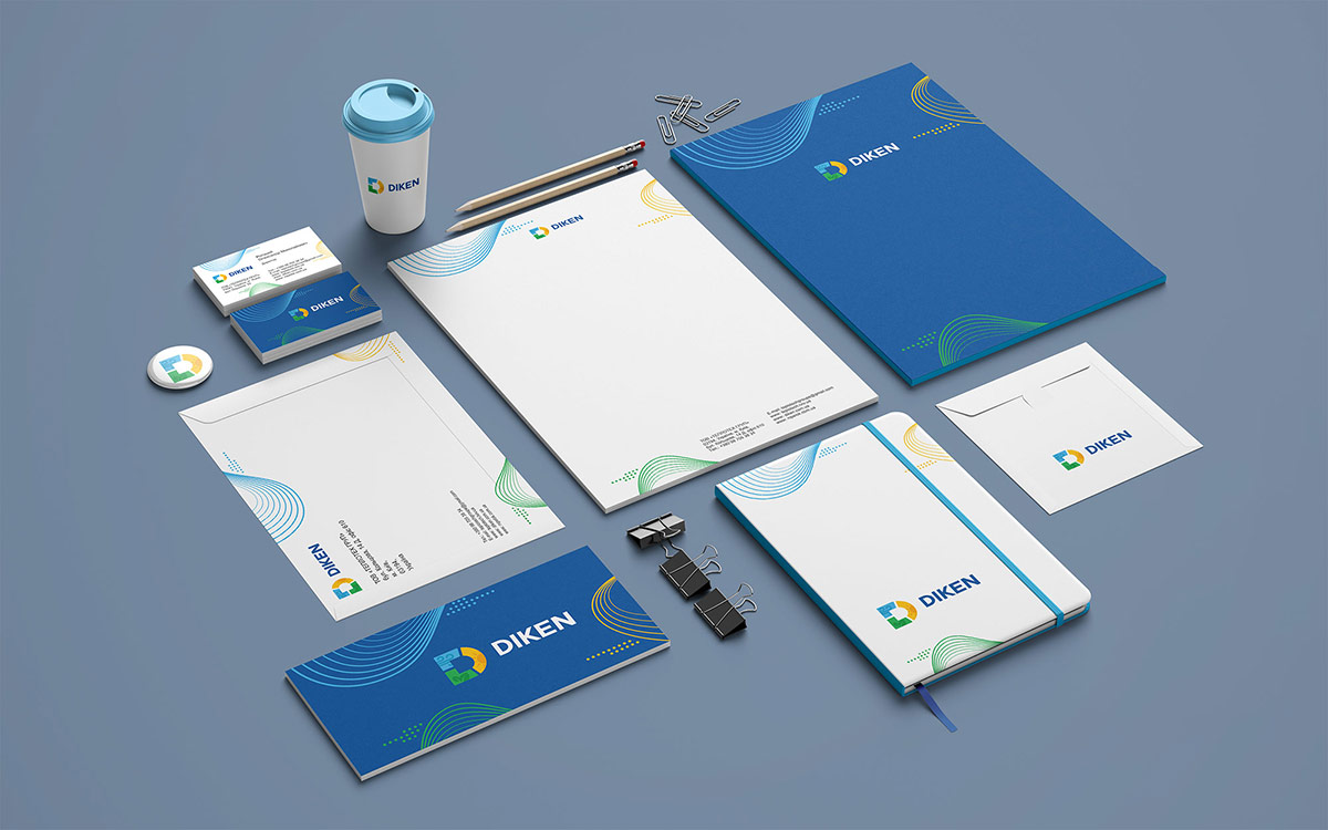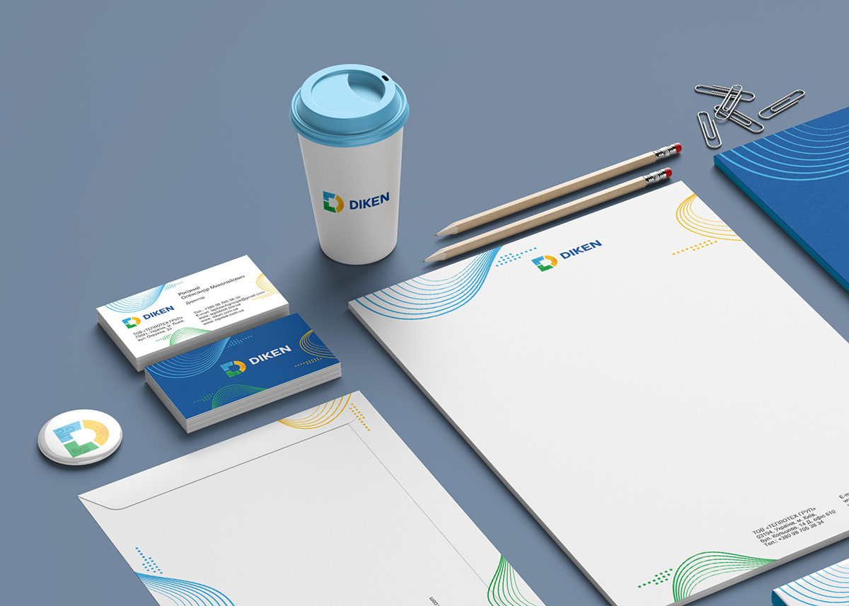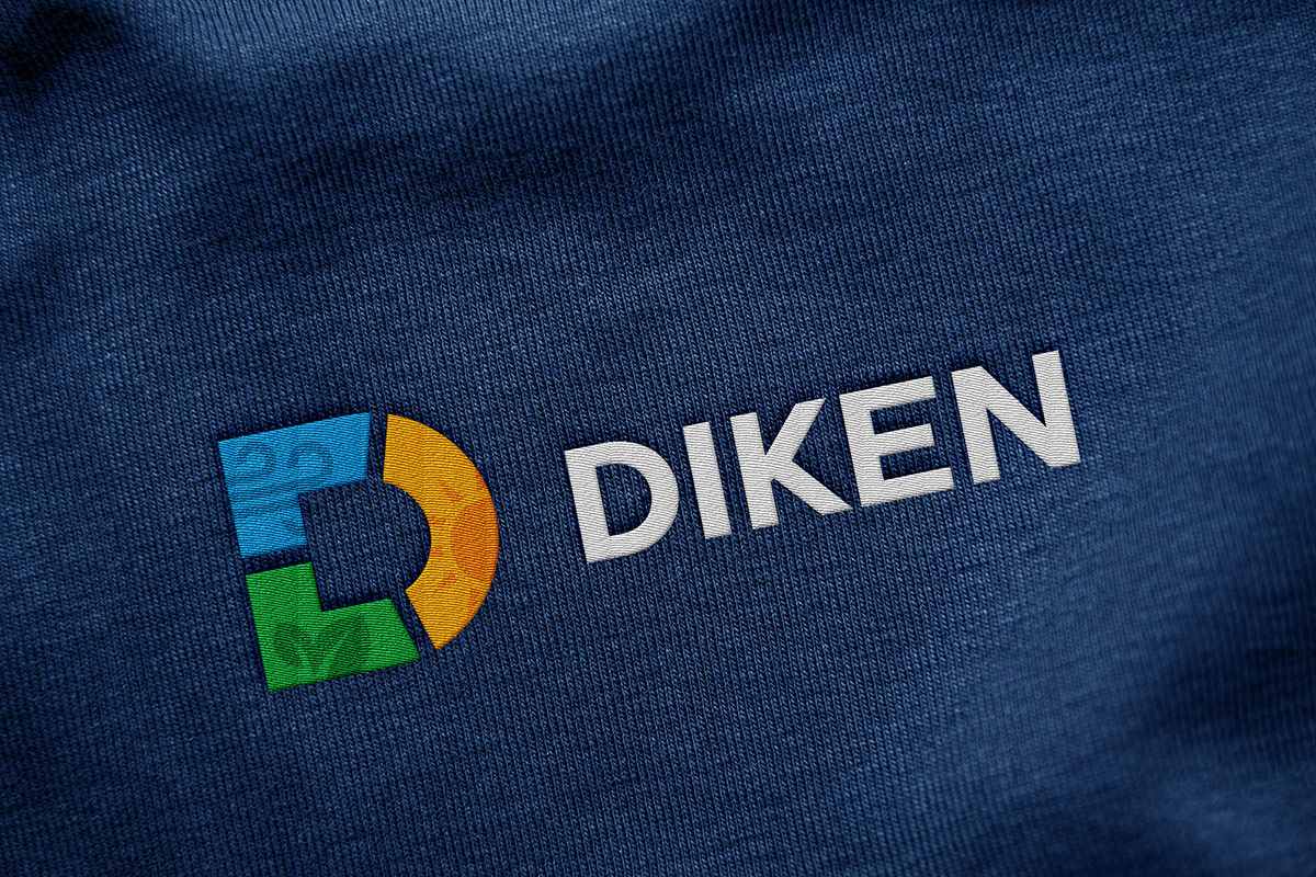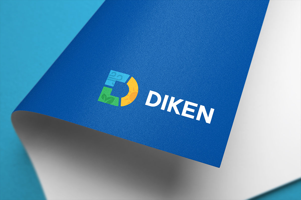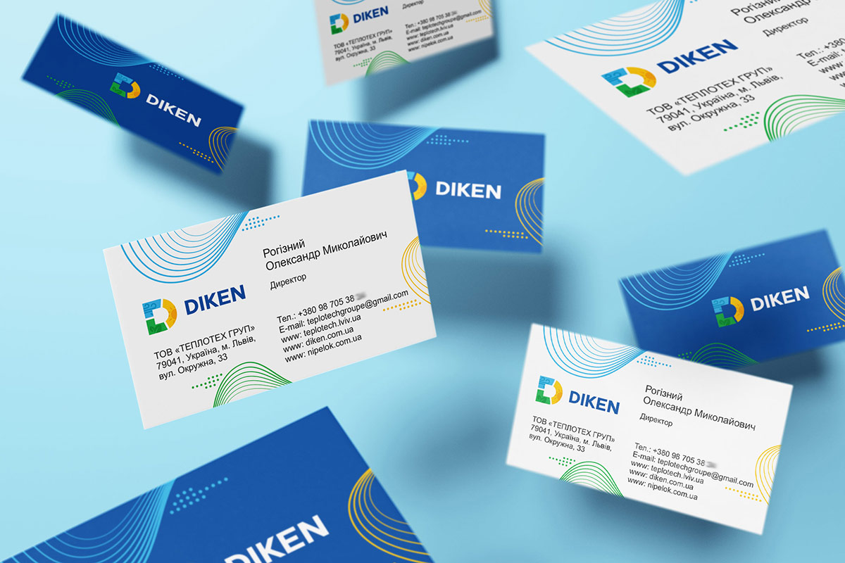 Шрифтове написання назви “DIKEN” розроблено дизайнерами нашої студії та виконане у строгому стилі.