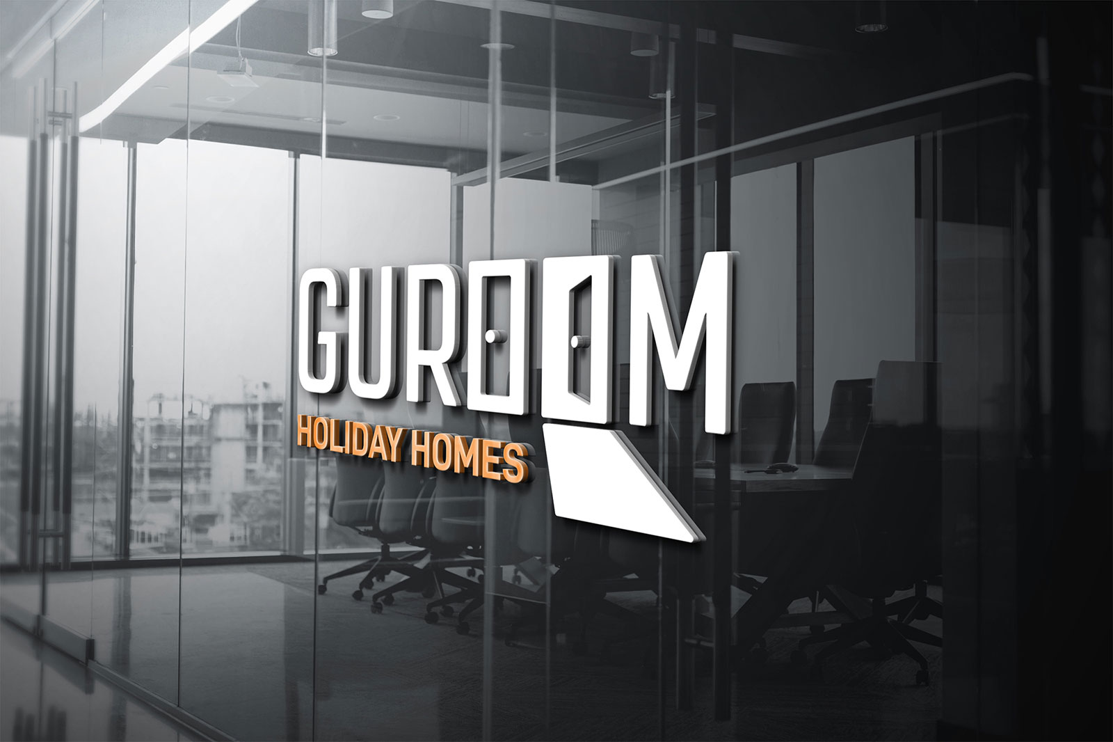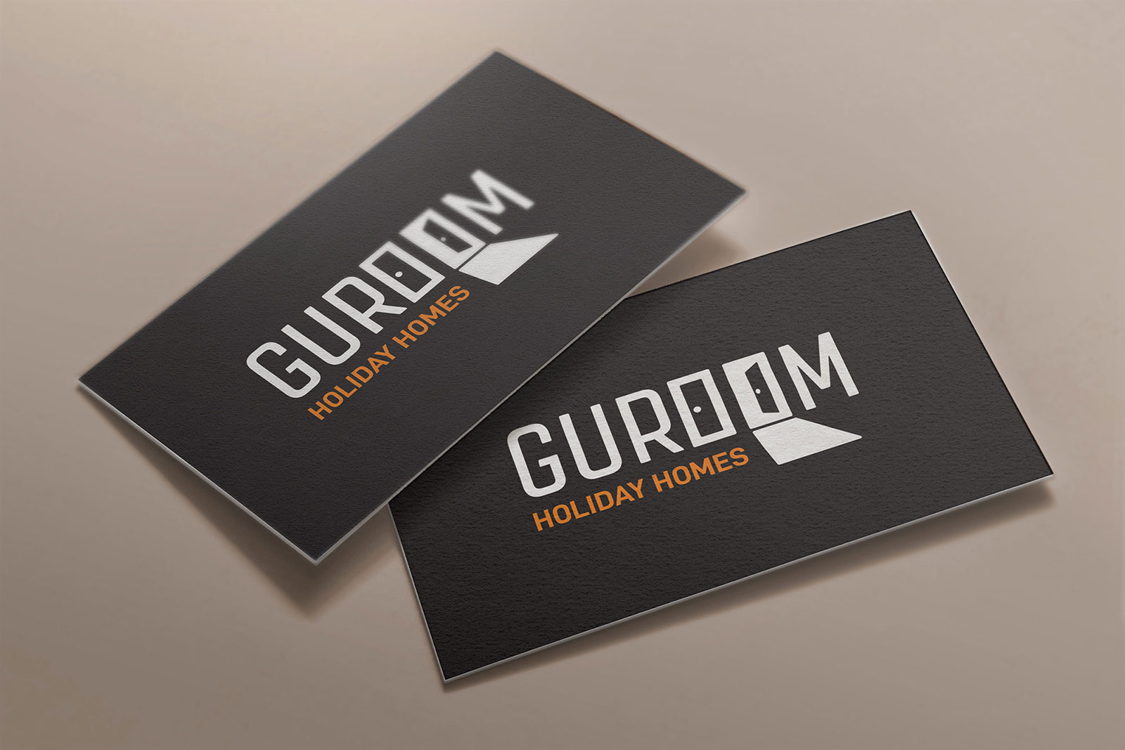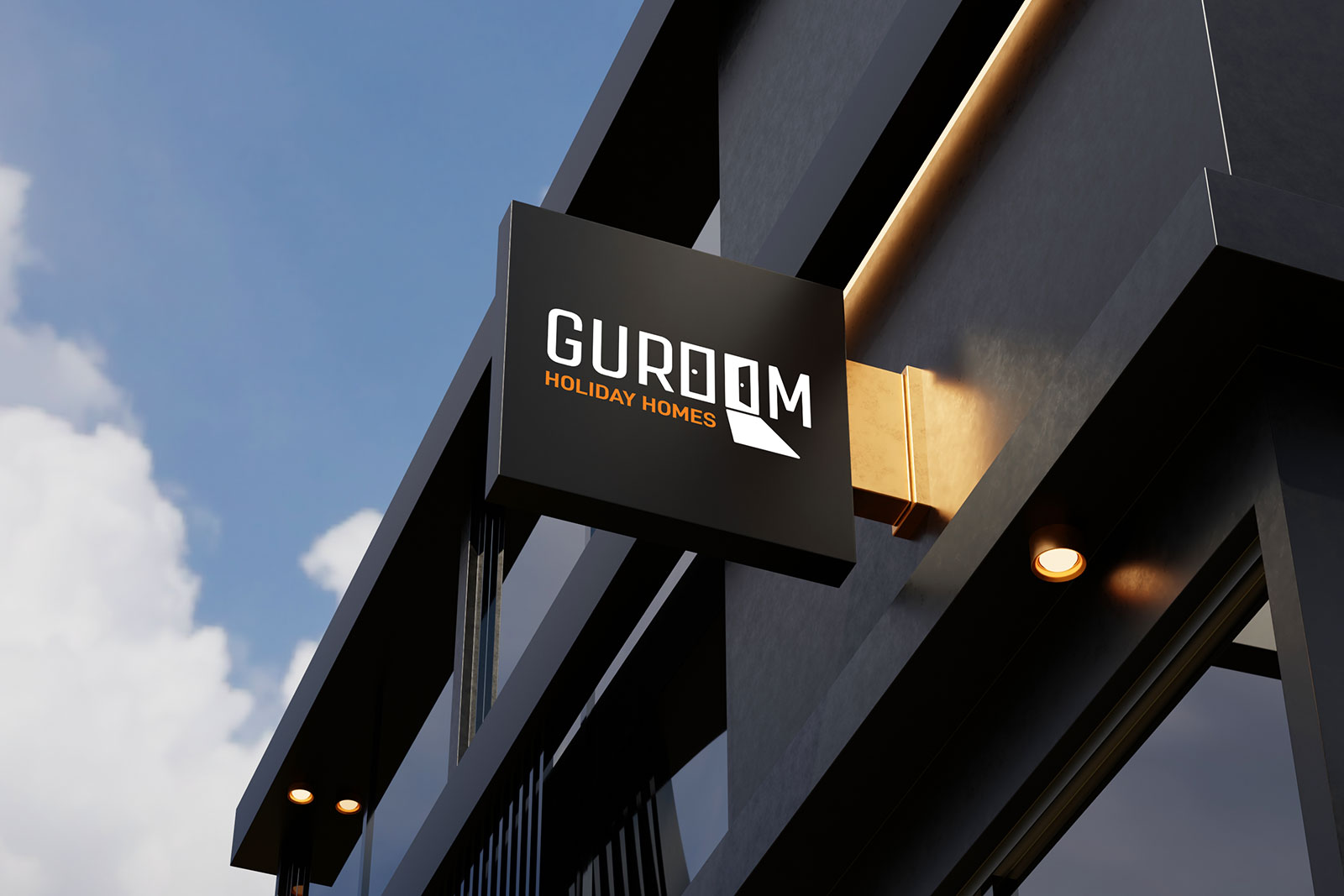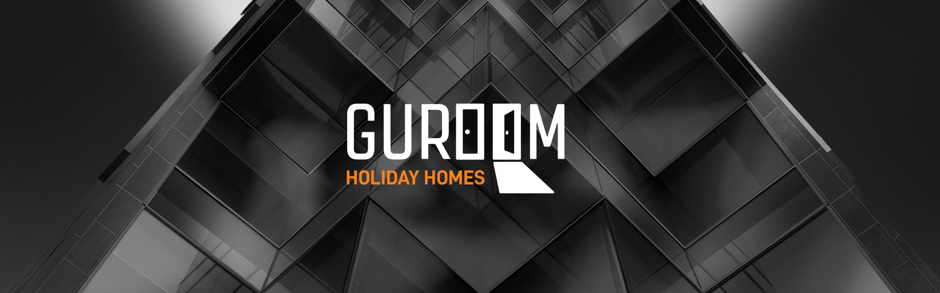 Шрифтове написання назви “GUROOM” розроблено дизайнерами нашої студії та виконане у строгому стилі. Для розшифровки діяльності було використано в логотипі дескриптор “Holiday Homes”.