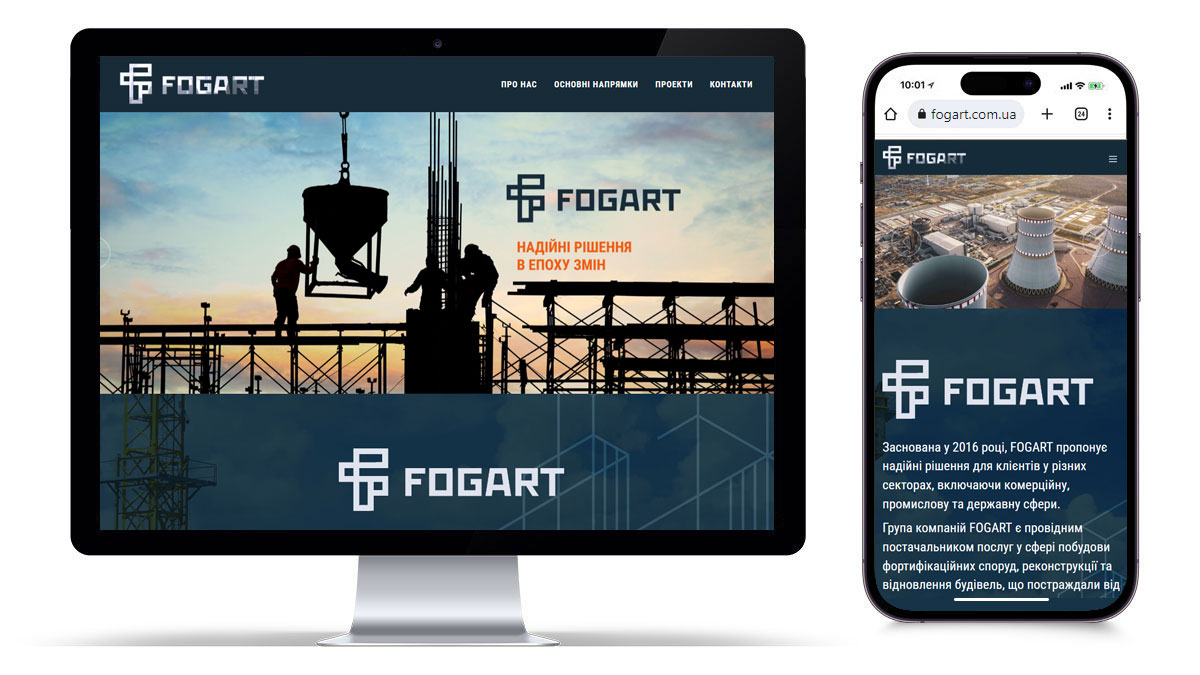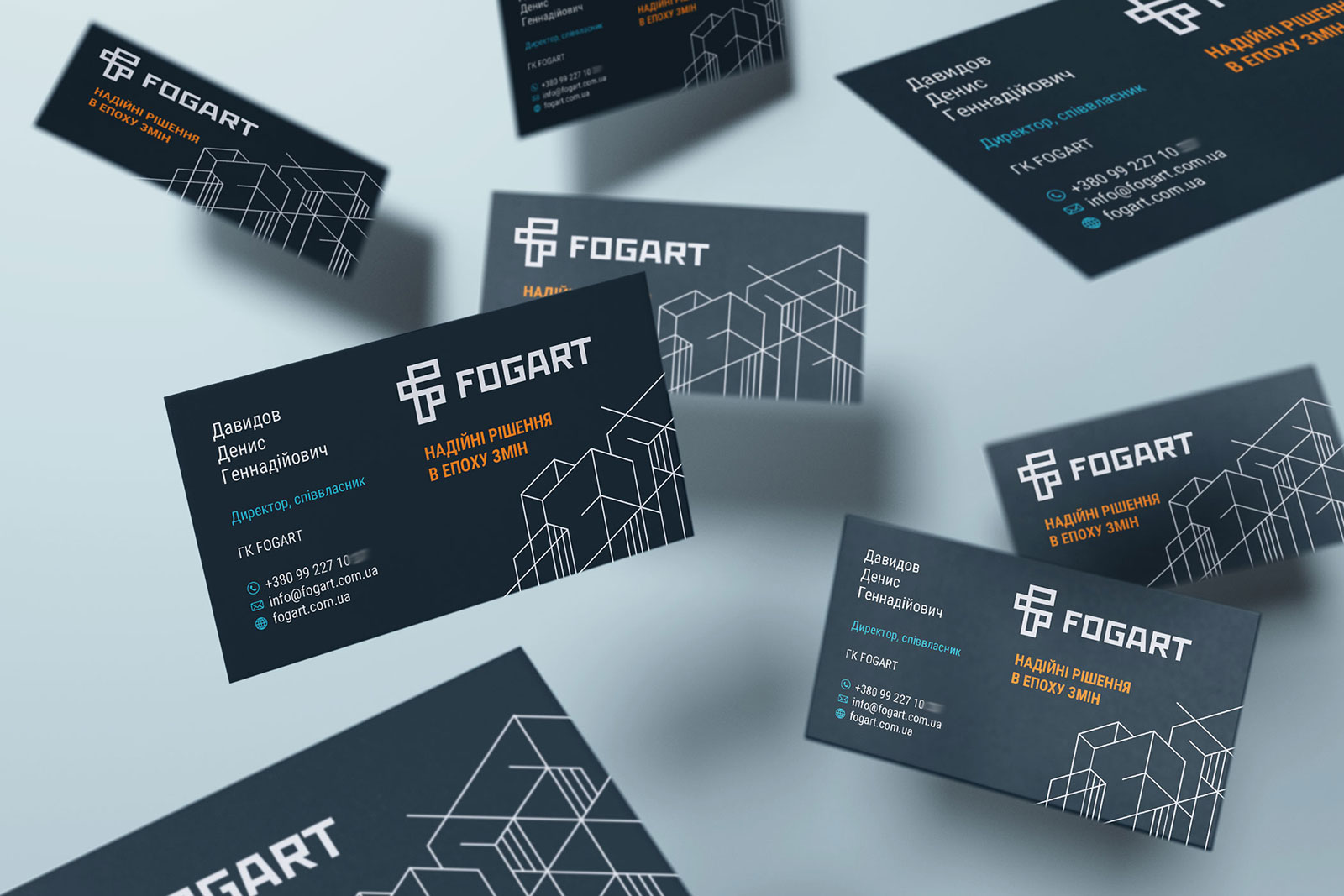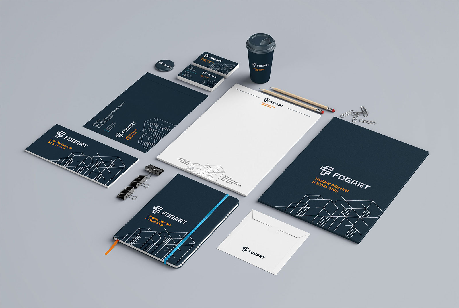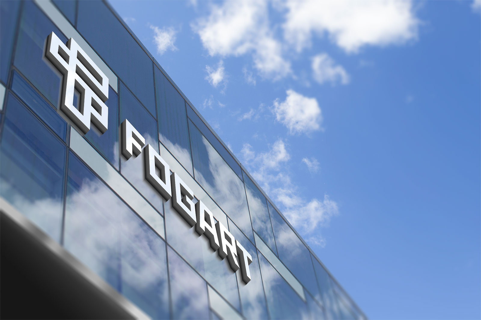 Розроблений логотип виконаний у вигляді стилізації першої літери назви "F" у вигляді будівельного об'єкта (вид зверху). Шрифтове написання назви "FOGART" розроблено дизайнерами нашої студії та виконане у строгому стилі.