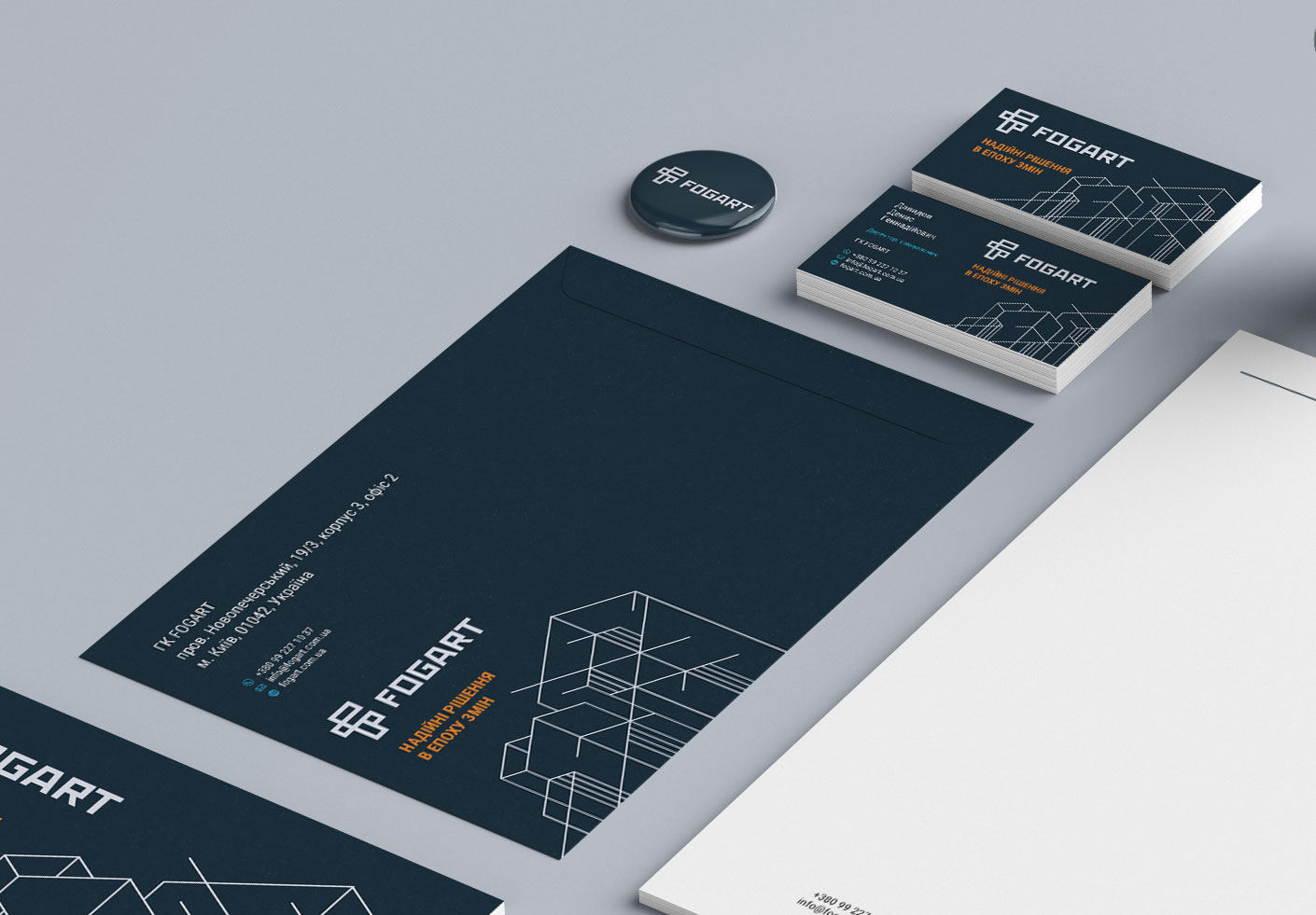 Особливу увагу хочеться приділити фірмовому стилю, який дизайнери студії пропрацювали досить ретельно. В рамках замовлення розроблено стандартний набір документів: візитні картки, фірмовий бланк, конверт, шаблон презентації. Розроблений фірмовий стиль, створений з ліній об'ємних будівельних конструкцій об'єктів, доповнює логотип, створюючи єдиний та універсальний блок інформації.