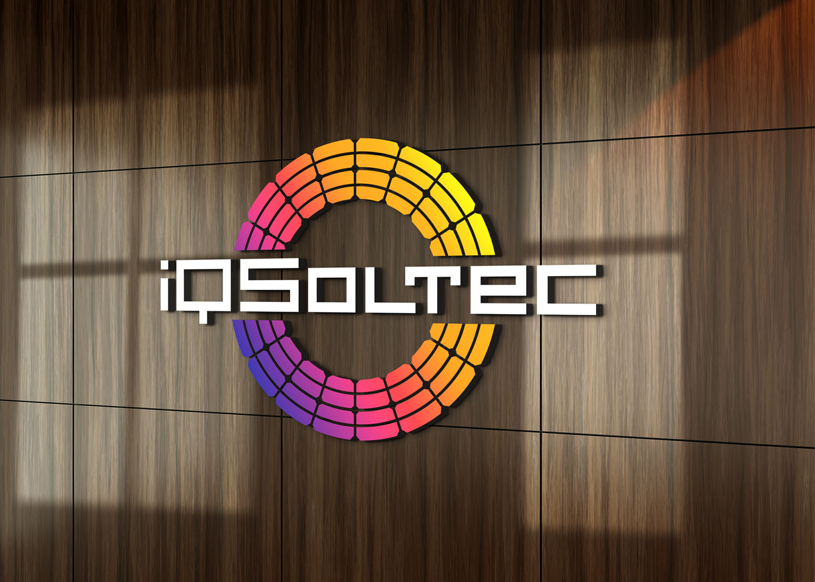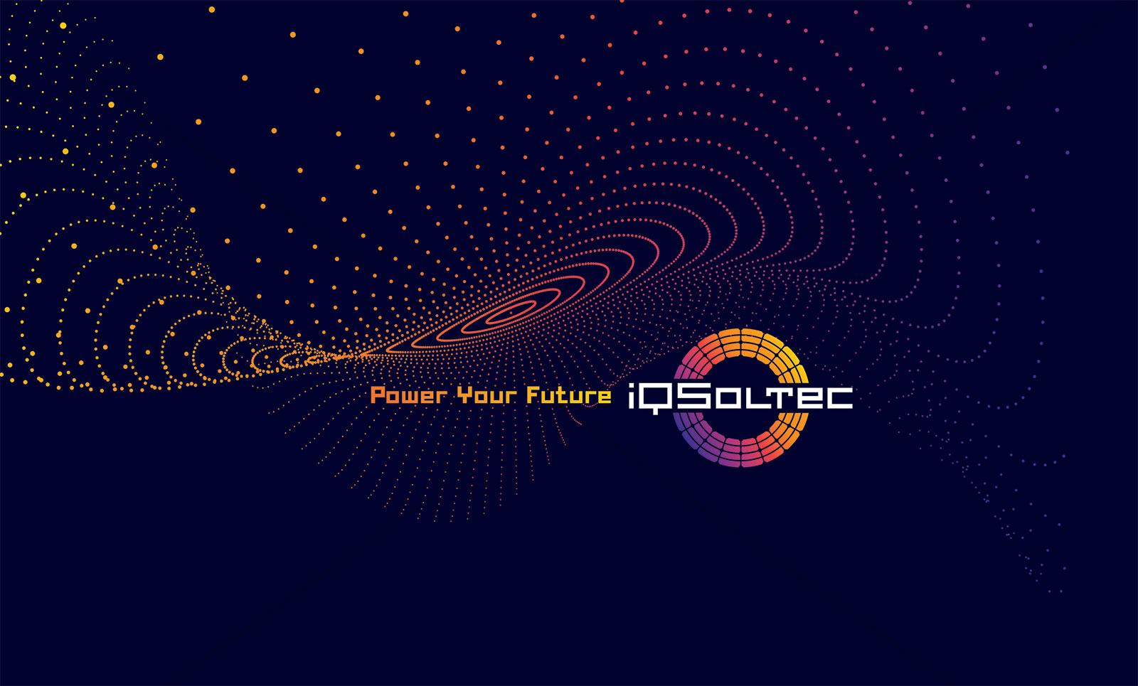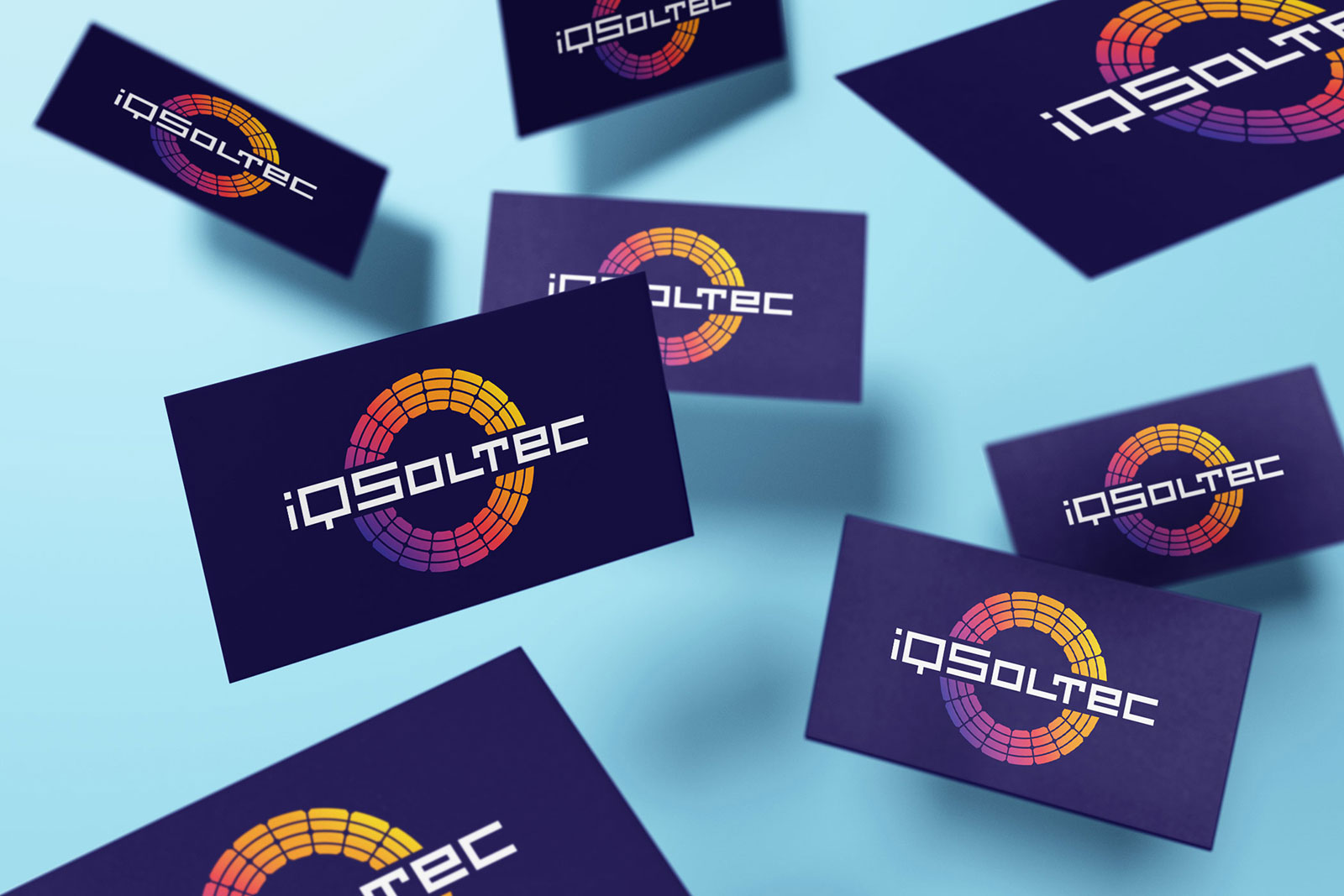 Після детального обговорення різних варіантів Замовник затвердив наведений нижче логотип, що складається зі знака у вигляді кола (відбиває сонце) з елементів сонячних панелей. Шрифтове написання назви "iQSoltec" розроблено дизайнерами нашої студії та виконане у строгому стилі.