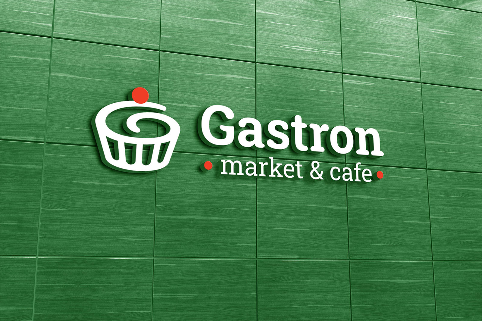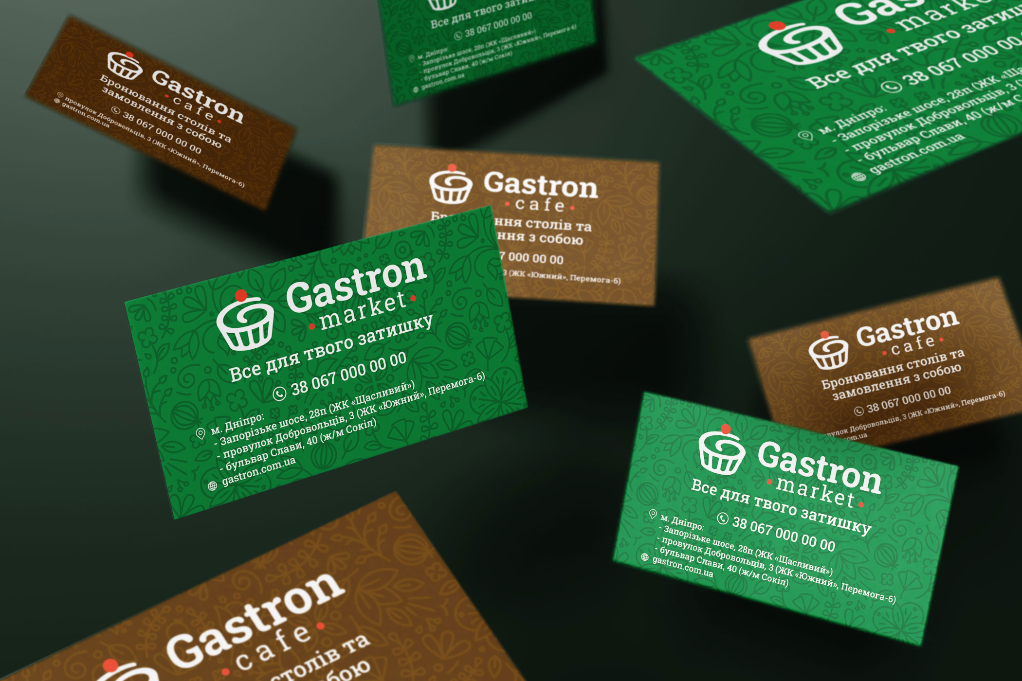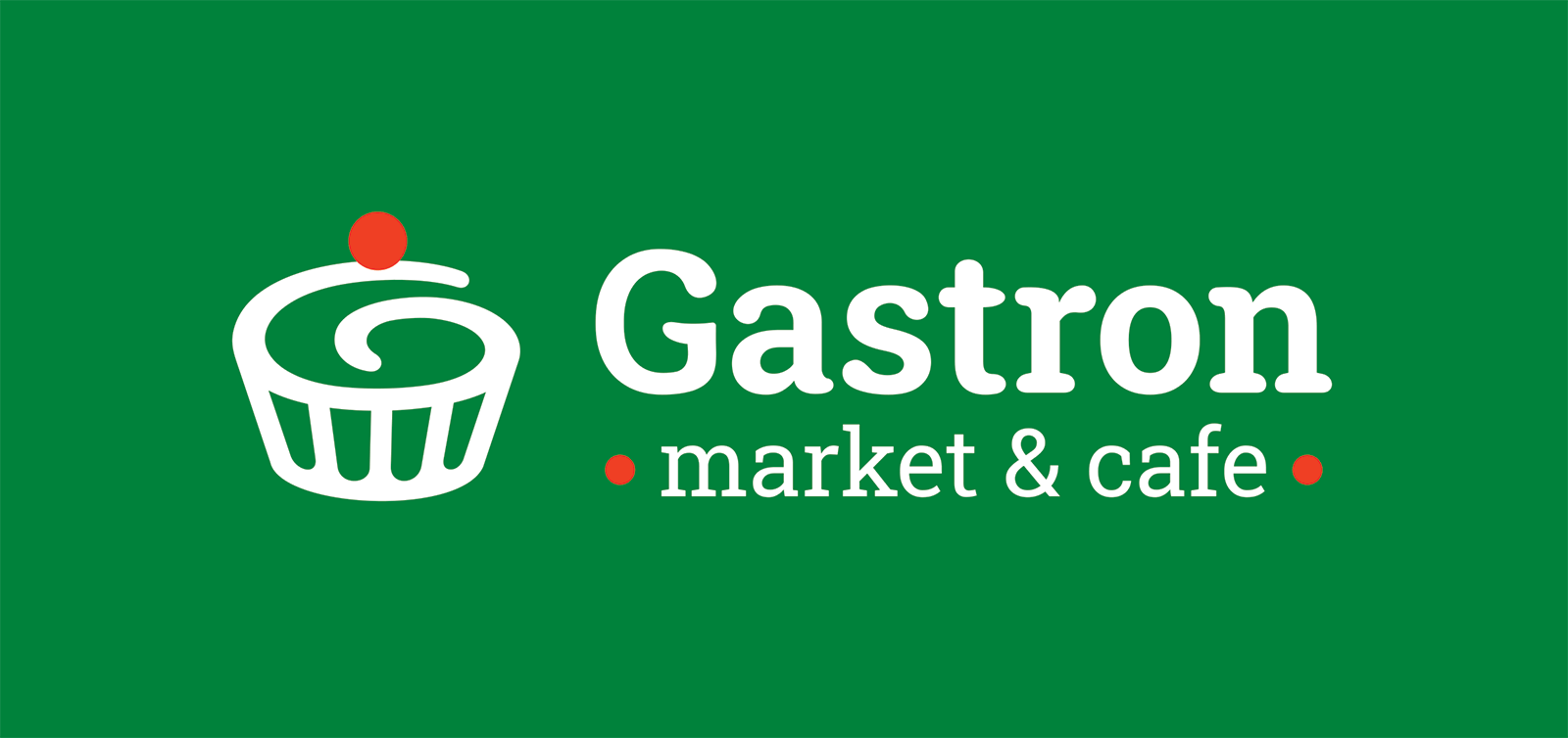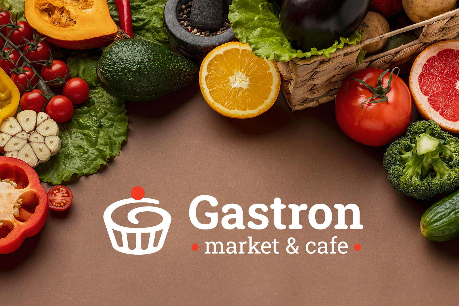 Шрифтове написання назви "Gastron" розроблено дизайнерами нашої студії та виконане у строгому стилі. Для розшифровки діяльності прийнято використовувати в логотипі дескриптор “market”.