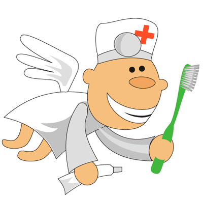 Нам дуже сподобався розроблений логотип - цей веселий данстист, що летить, зі щіткою і зубною пастою (це просто диво!!!).