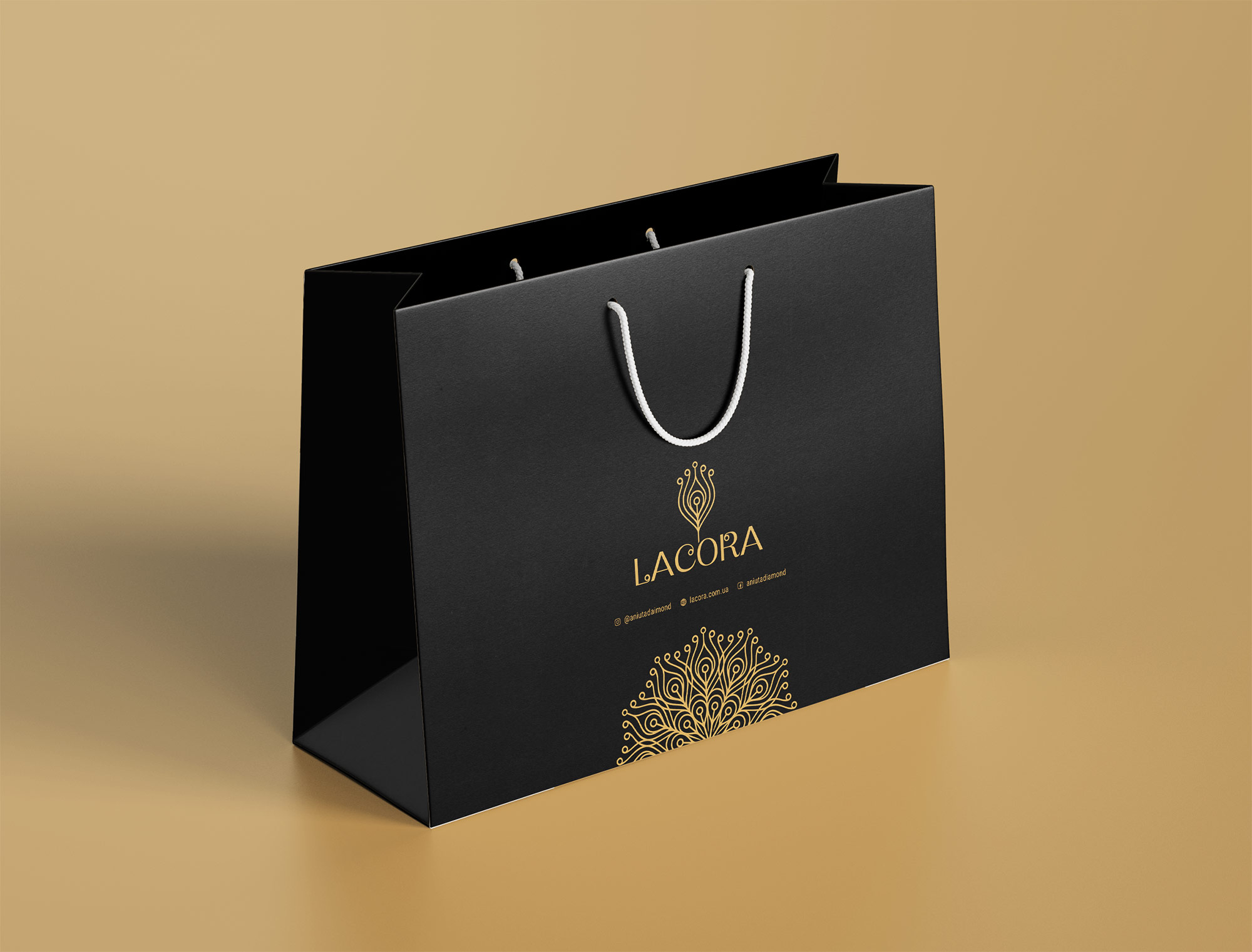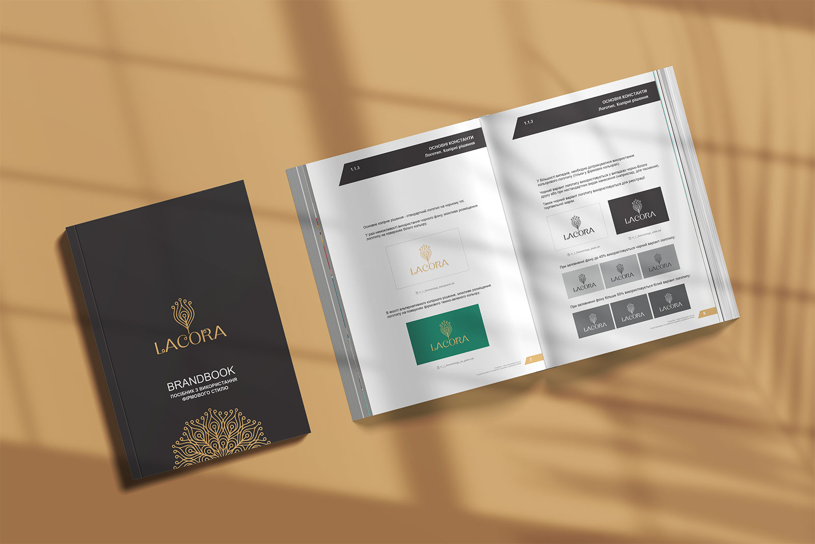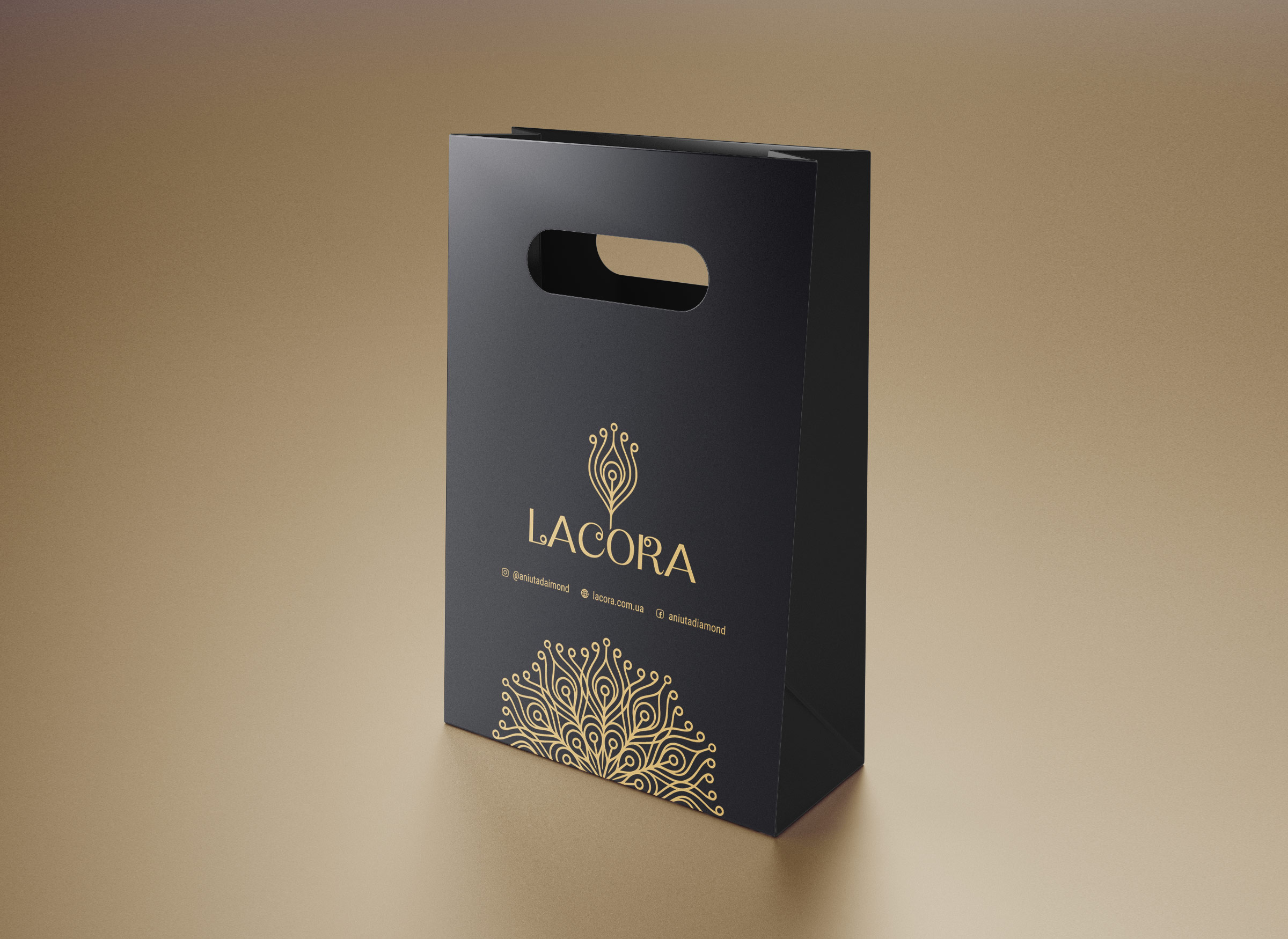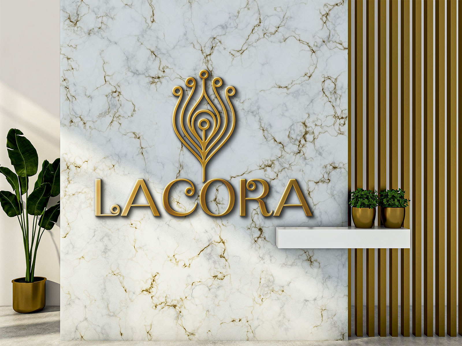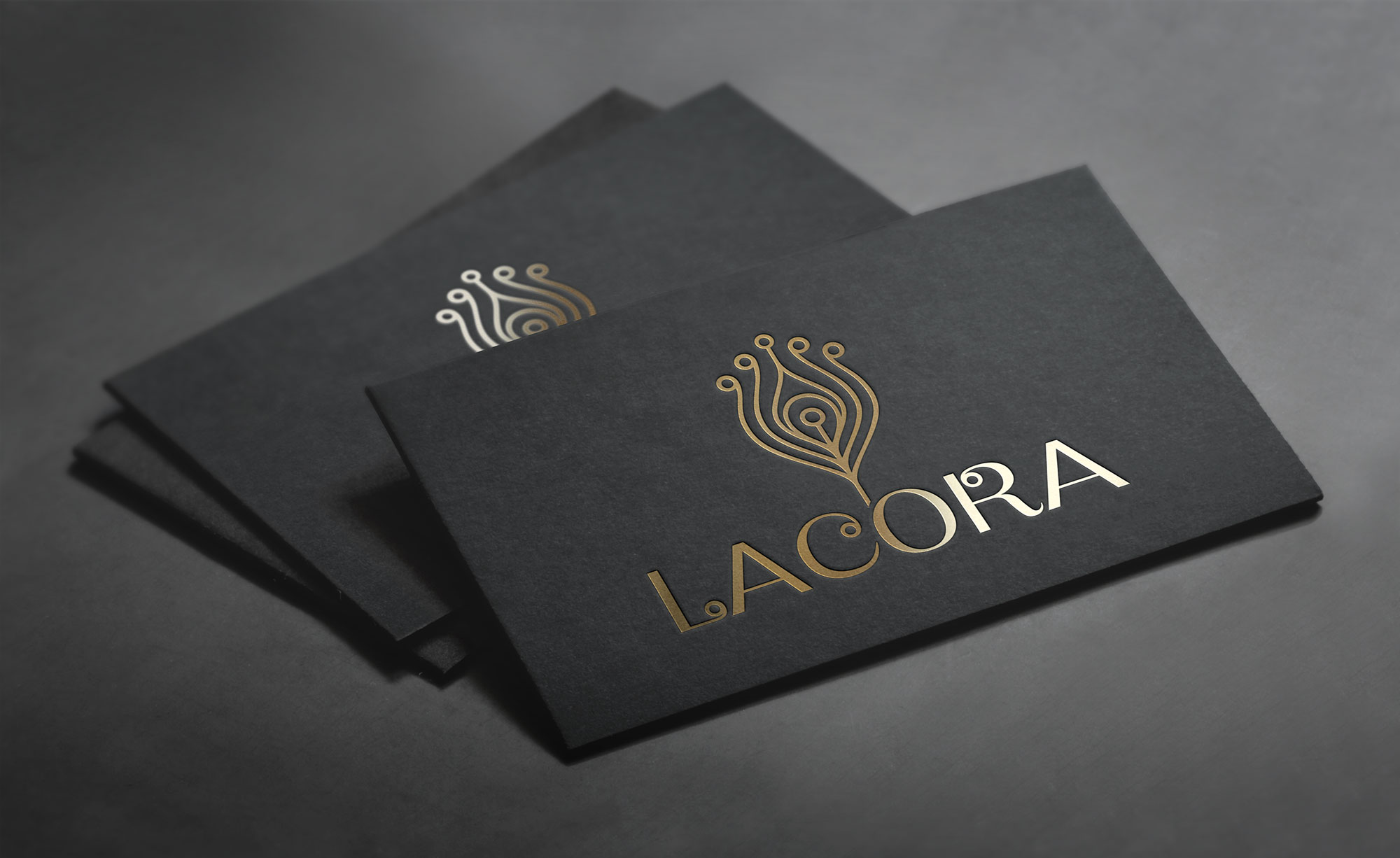 У результаті глибокого аналізу та обговорення концепцій було затверджено логотип у вигляді стилізованого пера павича. Перо павича — символ витонченості, краси, благородства та індивідуальності. Воно не лише асоціюється з естетикою та доглядом, а й передає ідею яскравого самовираження, яке клієнти бренду LACORA досягають за допомогою професійного манікюру.