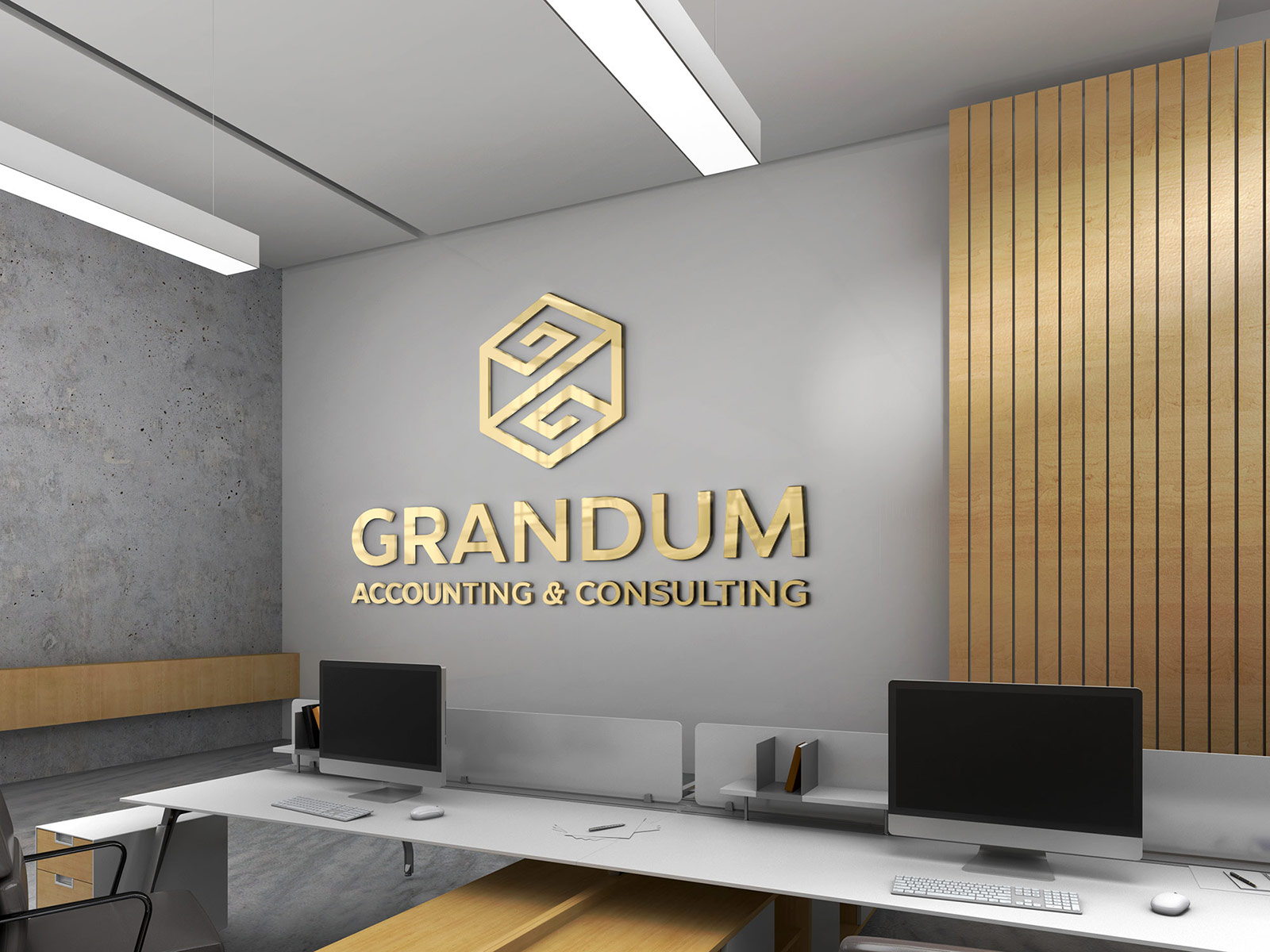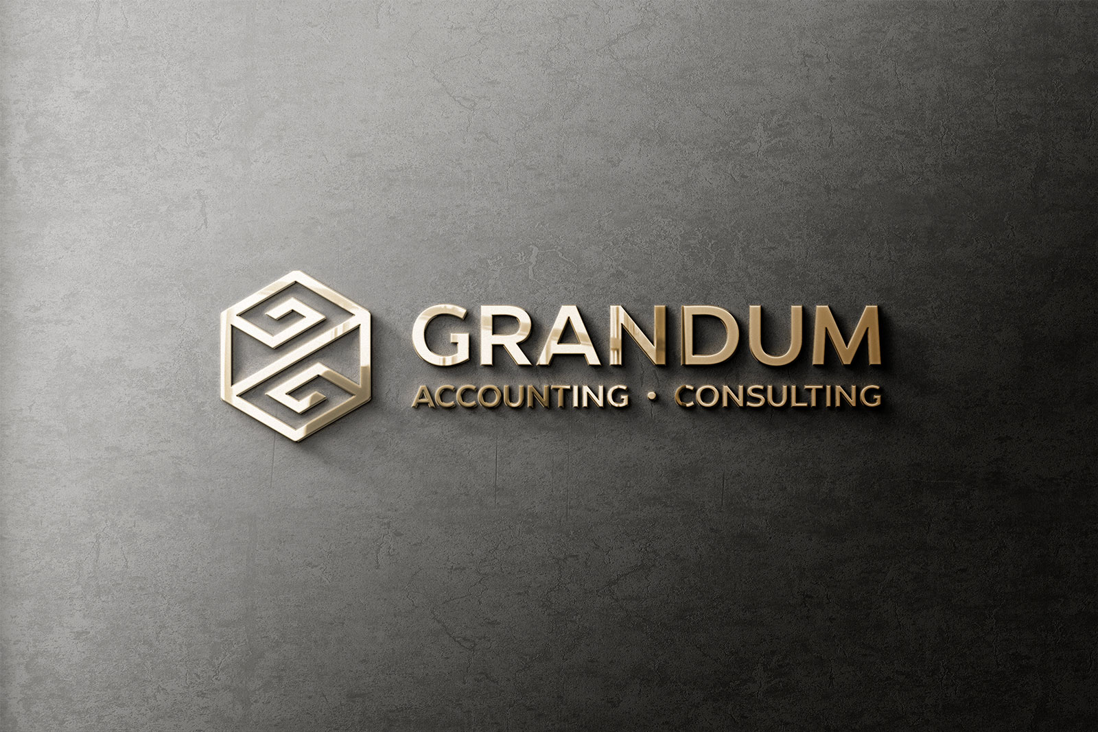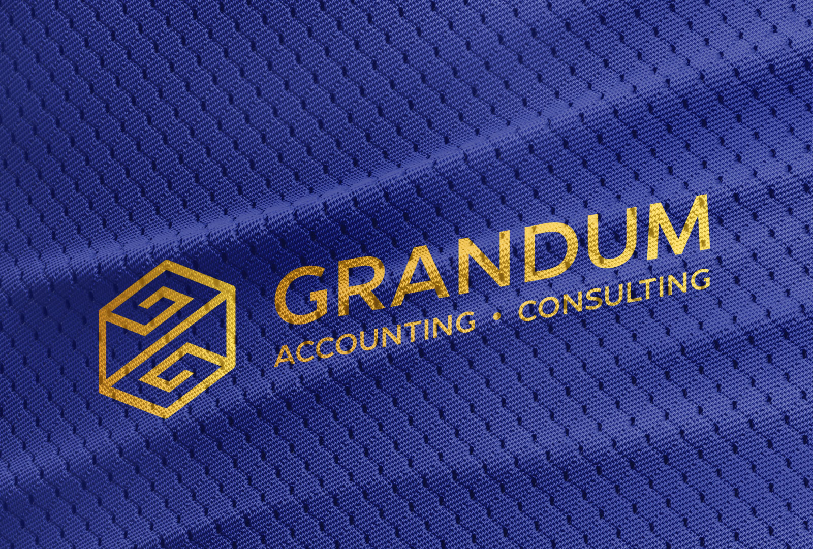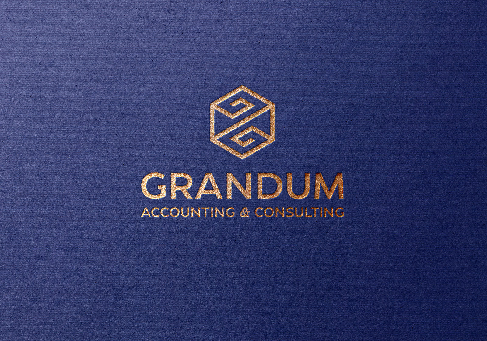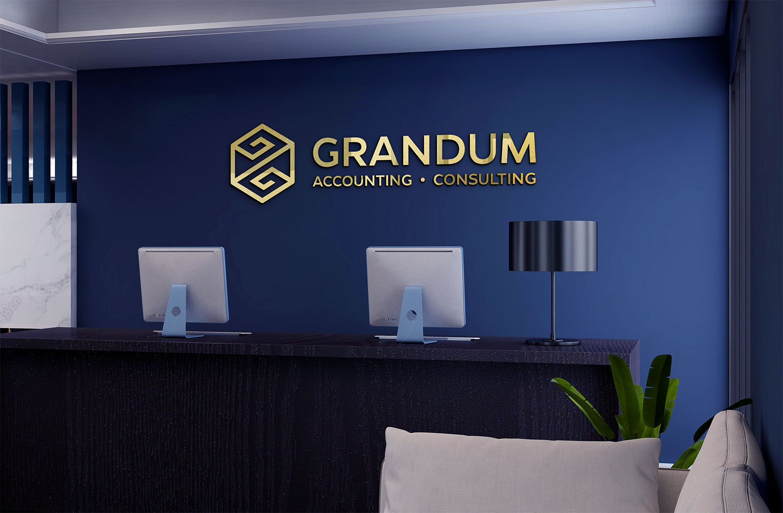 Шрифт написання назви компанії “GRANDUM” був спеціально опрацьований дизайнерами студії та виконано у строгому, геометрично вивіреному стилі, що підкреслює серйозність та статус бренду. Для більш чіткого позиціонування на ринку та розшифровки сфери діяльності, до логотипу також було додано дескриптор “ACCOUNTING ? CONSULTING”, який прямо вказує на ключовий напрямок діяльності компанії.