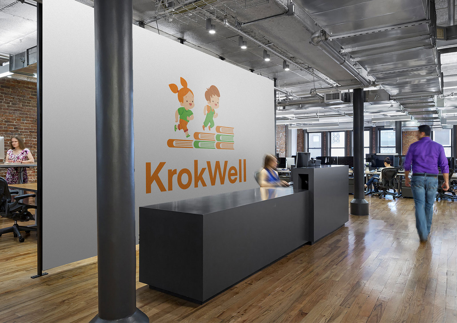 Шрифтове написання KrokWell, розроблене дизайнерами студії, виконане в об'ємному стилі, що надає логотипу сучасний і динамічний вигляд.