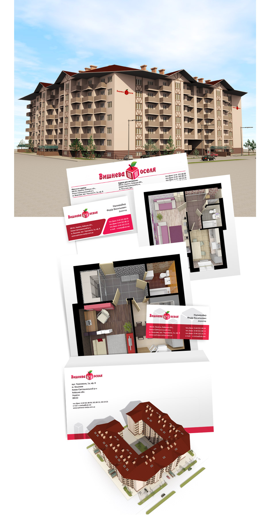 Роботу на замовлення 3D візуалізації житлового комплексу, логотипу, фірмового стилю, сайту, борду, брошури та іншої зовнішньої реклами зробили швидко та чітко – як і домовлялися.